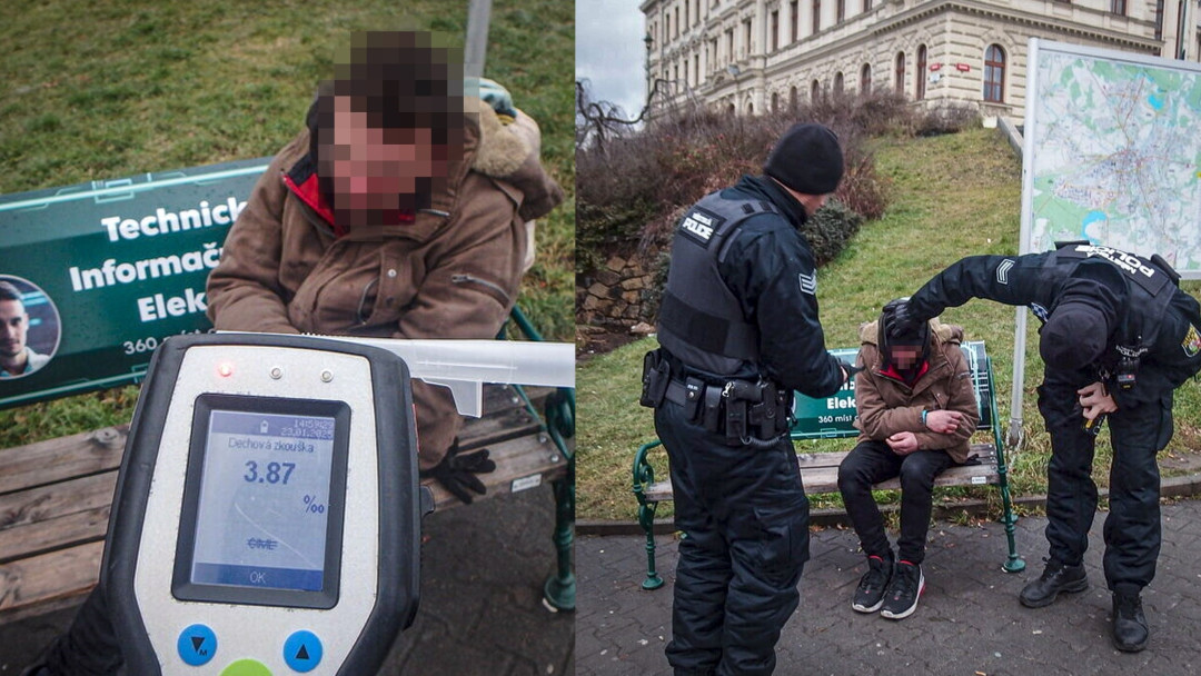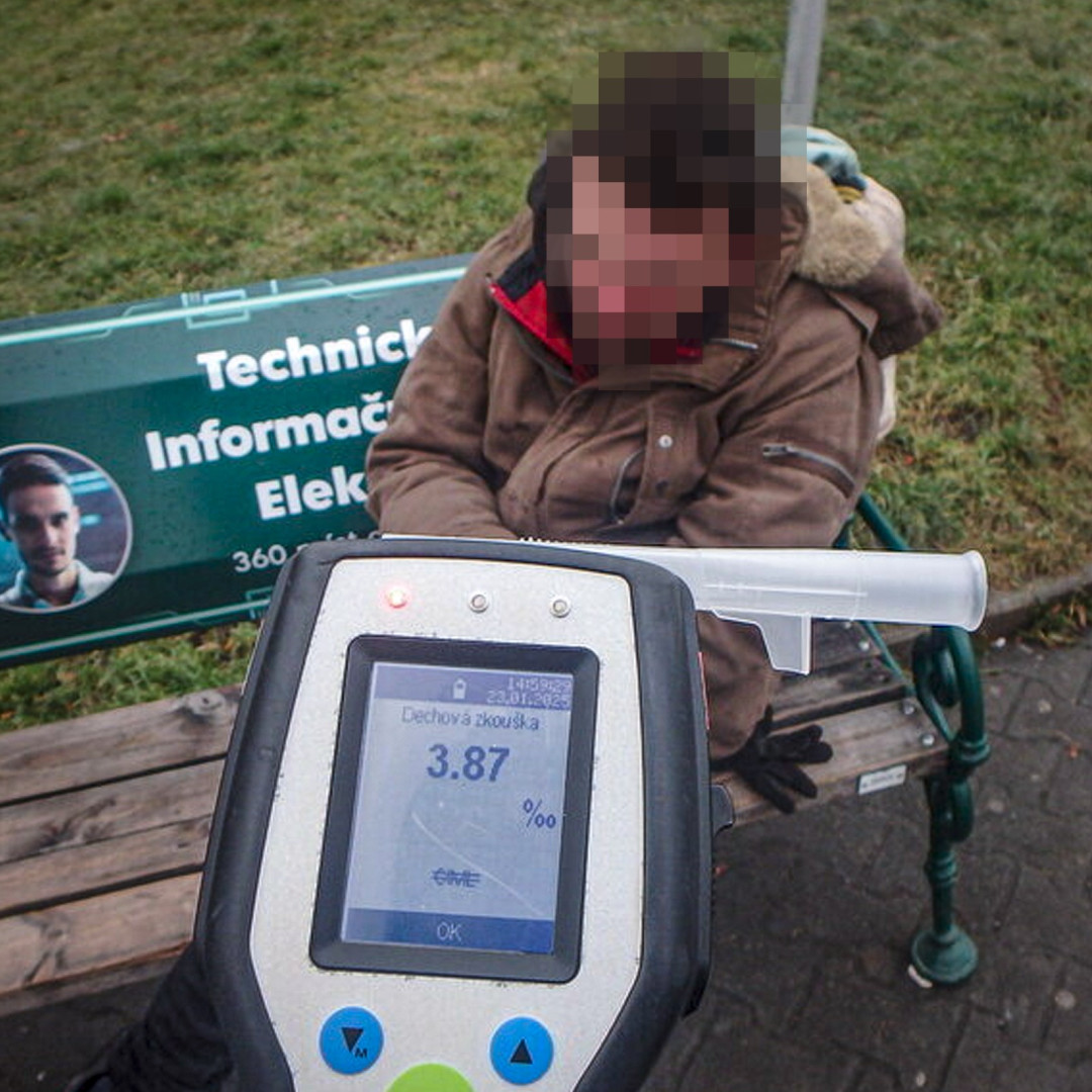 Spícímu opilci hrozilo, že na lavičce umrzne. Zkouška na alkohol ukázala 3,87 promile alkoholu v jeho dechu