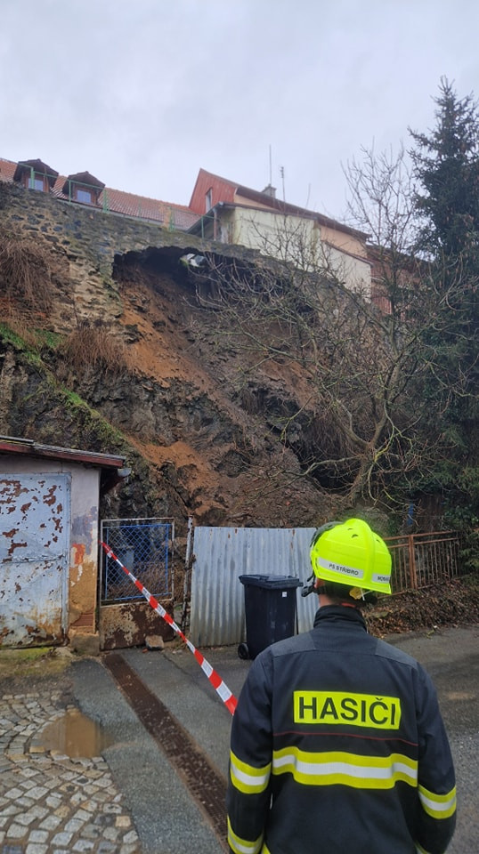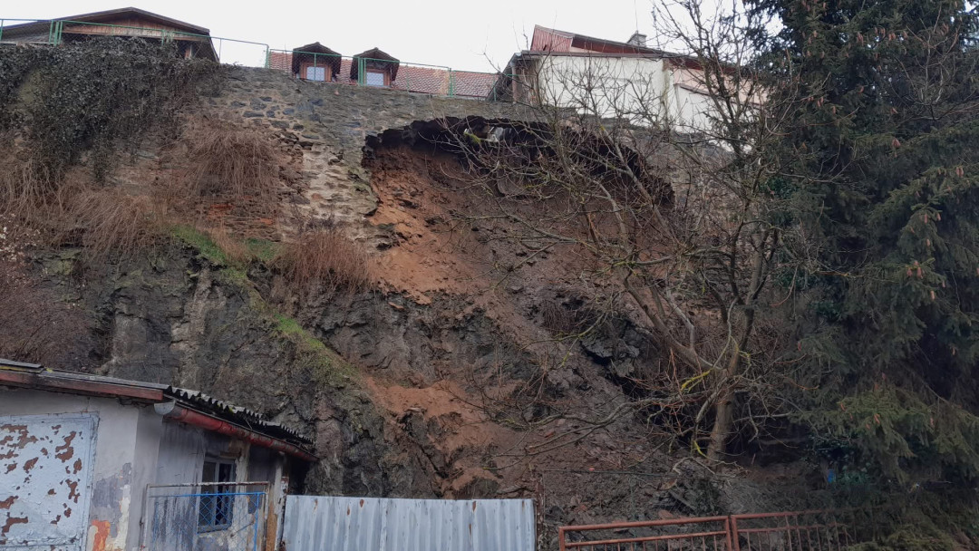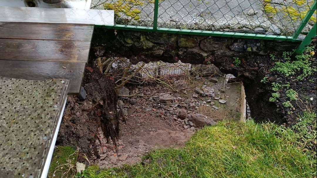 Část historické hradební zdi se sesunula v důsledku silného deště ve Stříbře na Tachovsku. A není to poprvé