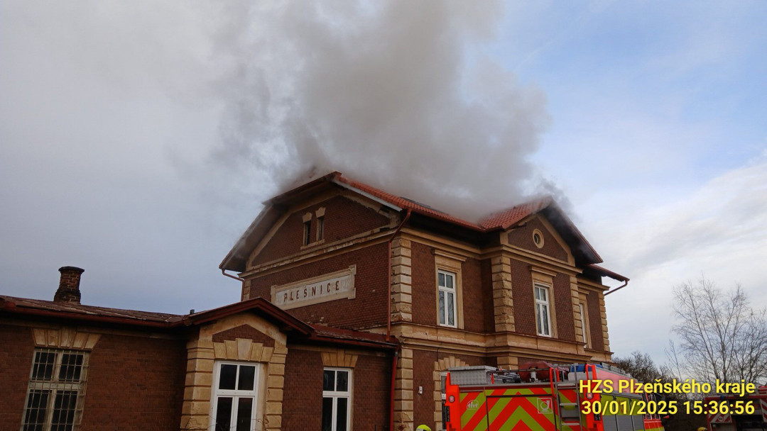 Na nádražní budově způsobil požár škodu za 1,5 milionu korun. Hasiči absolvovali velmi obtížný zásah