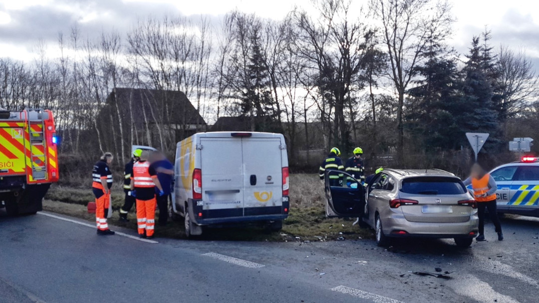 Střet osobáku s vlakem na železničním přejezdu a srážka auta s vozidlem pošty. Hasiči měli při pátku napilno