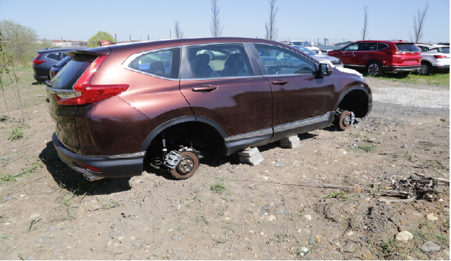 Zloděj nechal auta na "špalcích" ze kterých ovšem spadla a poškodila se
