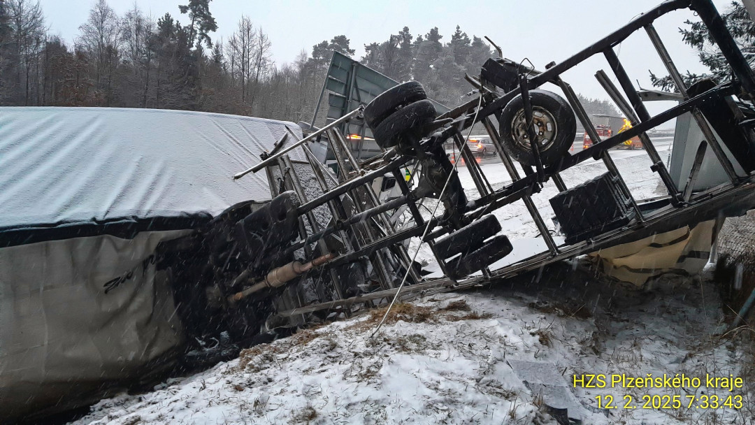 Ranní nehoda kamionu a dodávky na dálnici D5