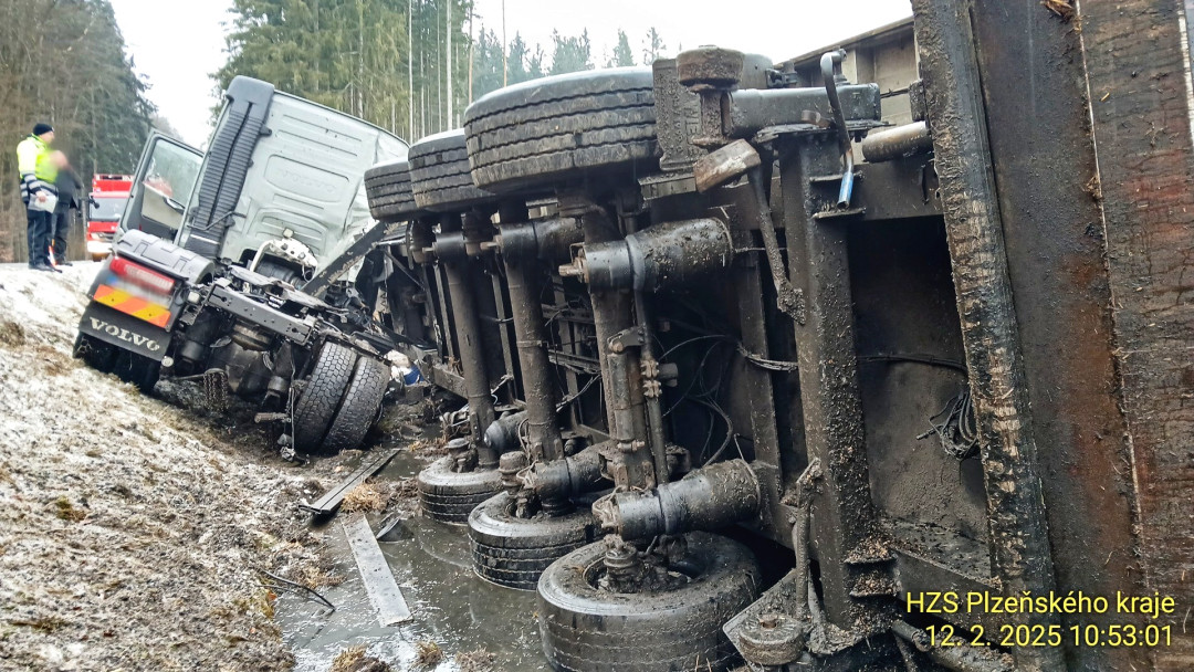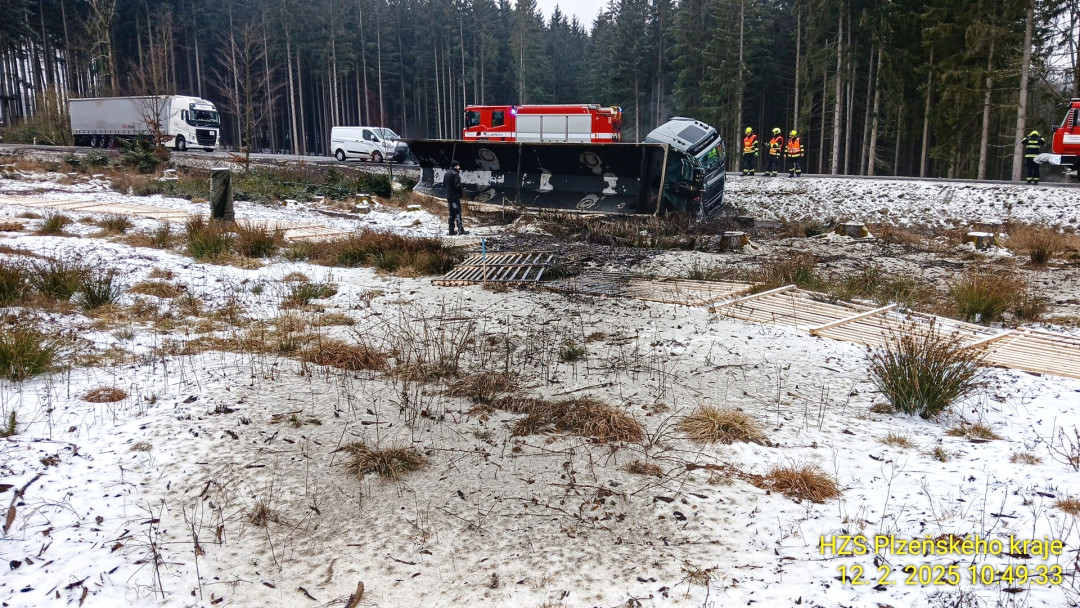 Ranní nehoda kamionu a dodávky na dálnici D5