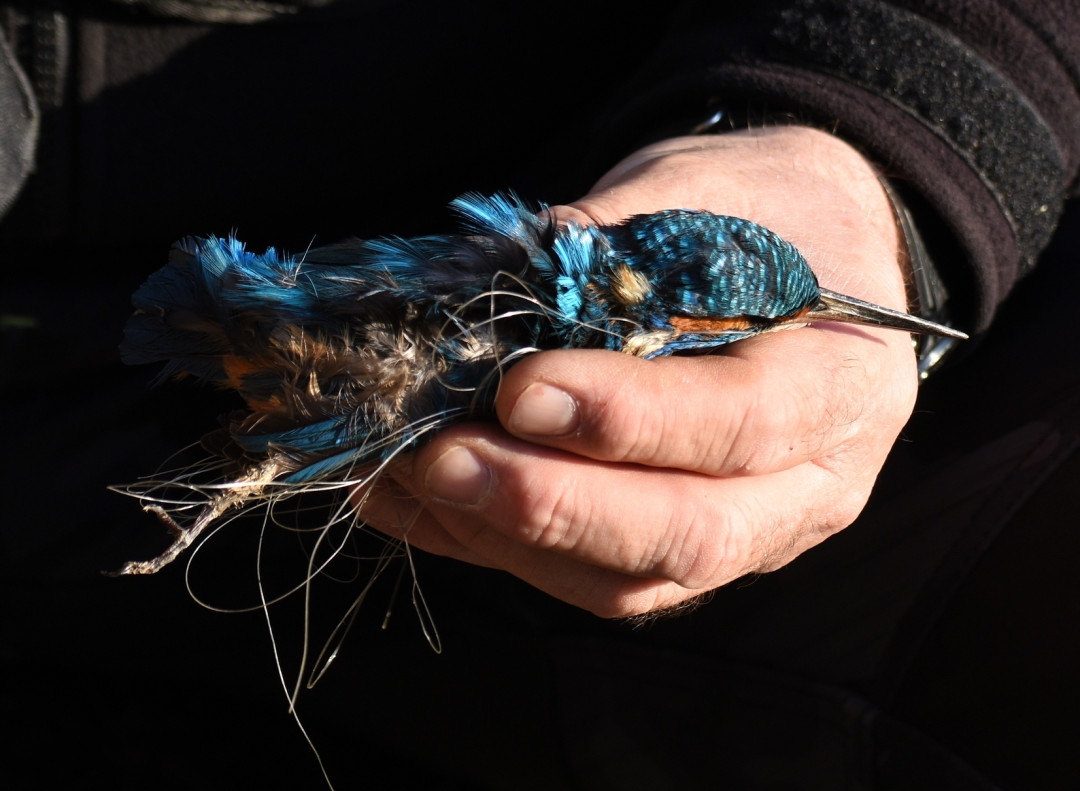 Létající smaragd zahynul zbytečnou smrtí na utrženém rybářském vlasci, který visel na stromě