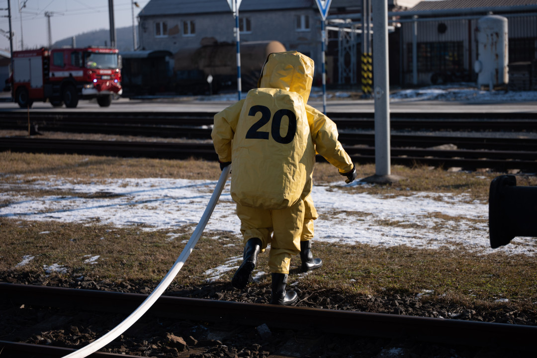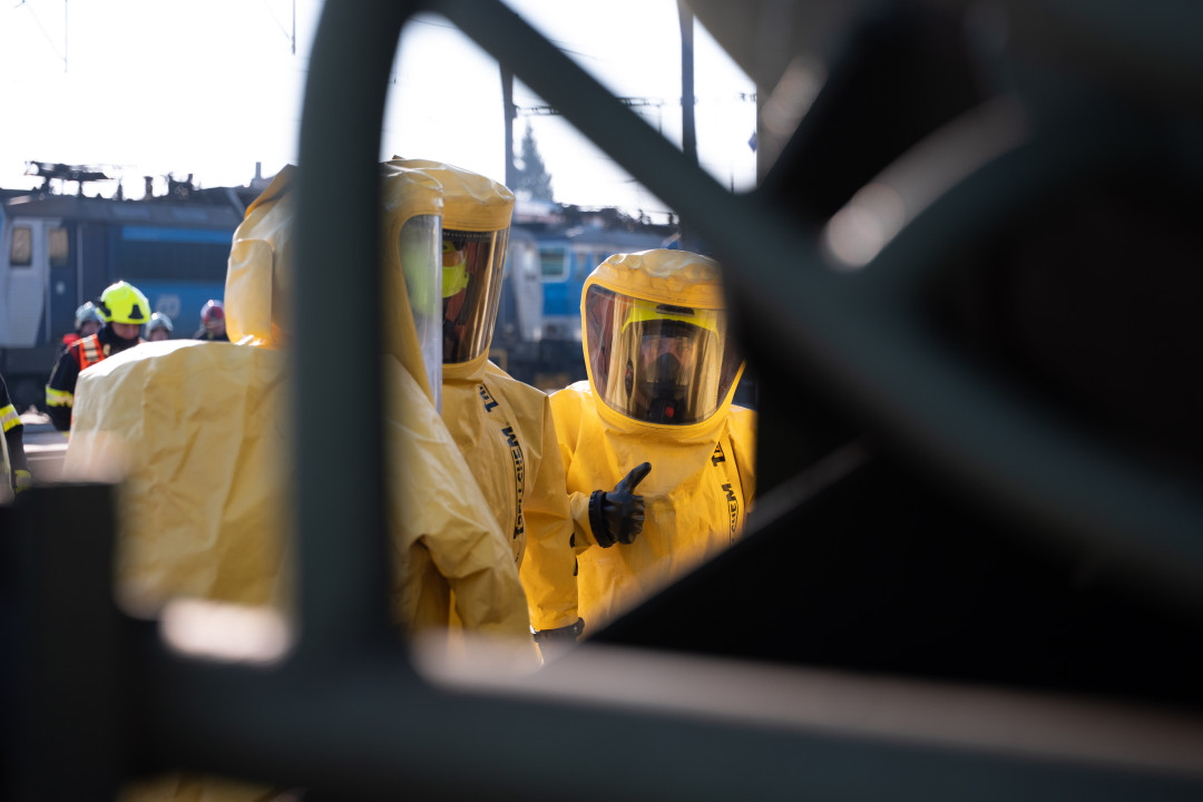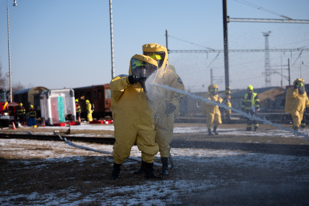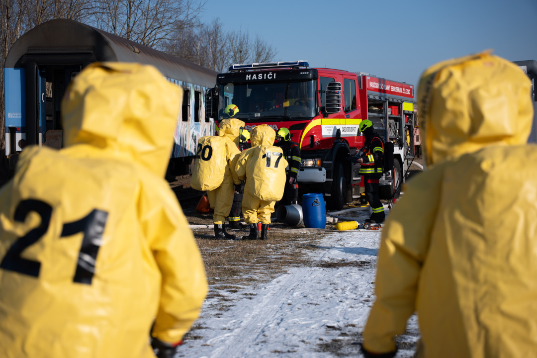 Drážní hasiči nacvičovali zásah, kdy z poškozené cisterny unikala nebezpečná kyselina octová