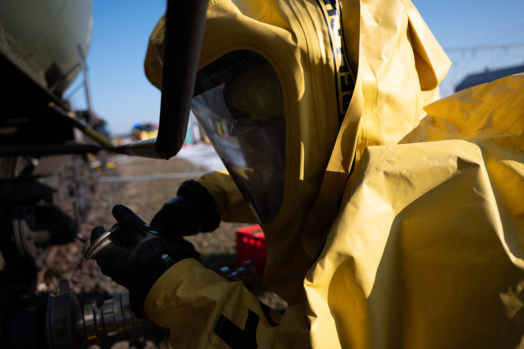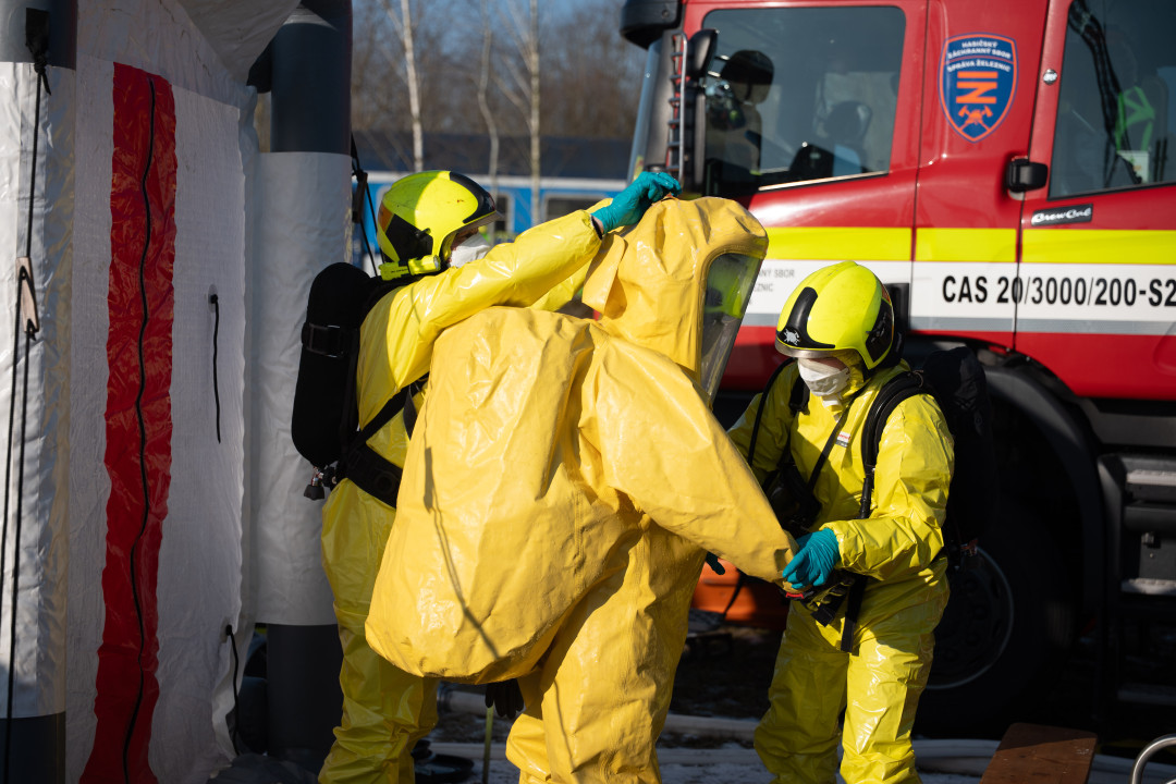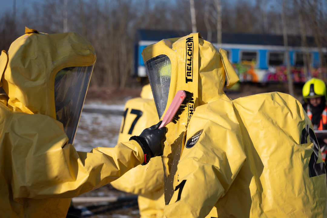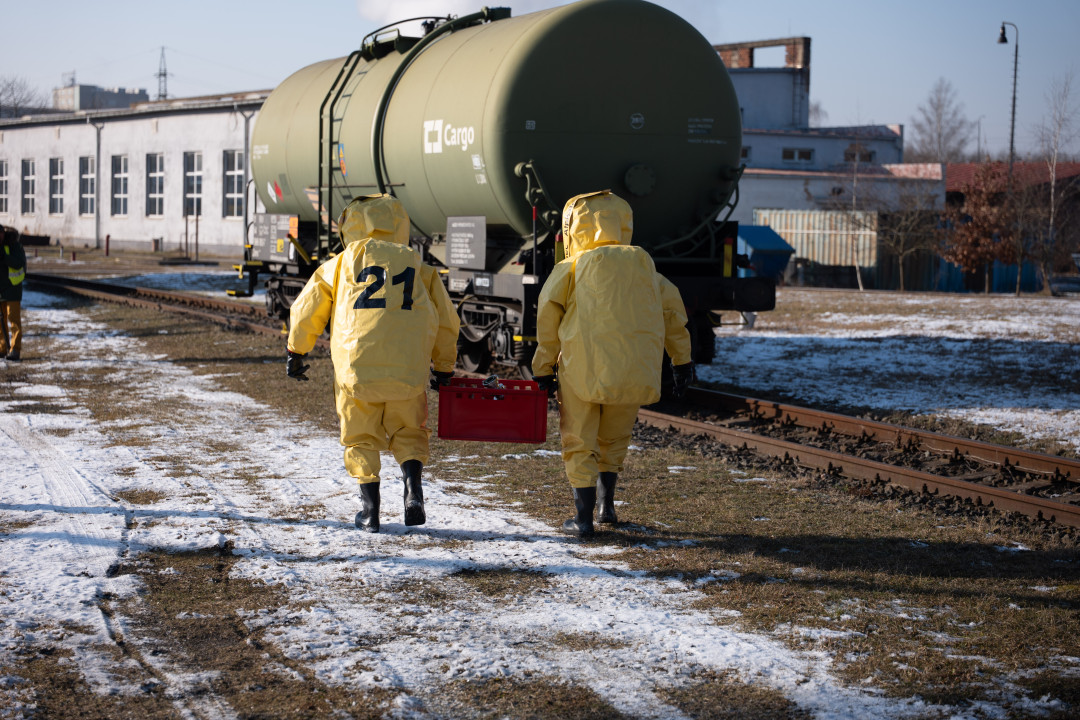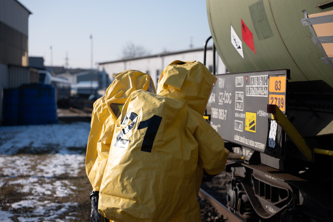 Drážní hasiči nacvičovali zásah, kdy z poškozené cisterny unikala nebezpečná kyselina octová