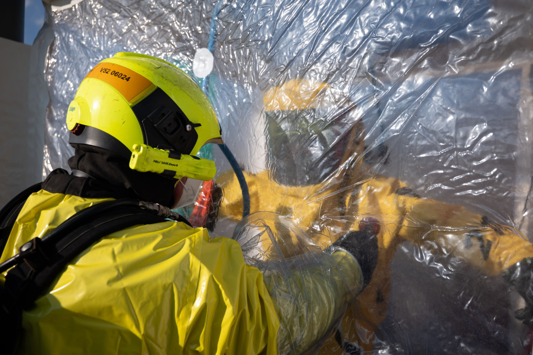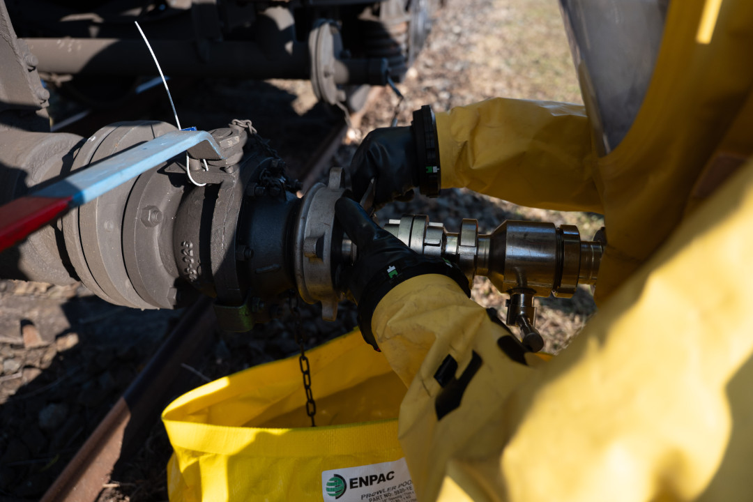 VIDEO: Drážní hasiči nacvičovali zásah, kdy z poškozené cisterny unikala nebezpečná kyselina octová
