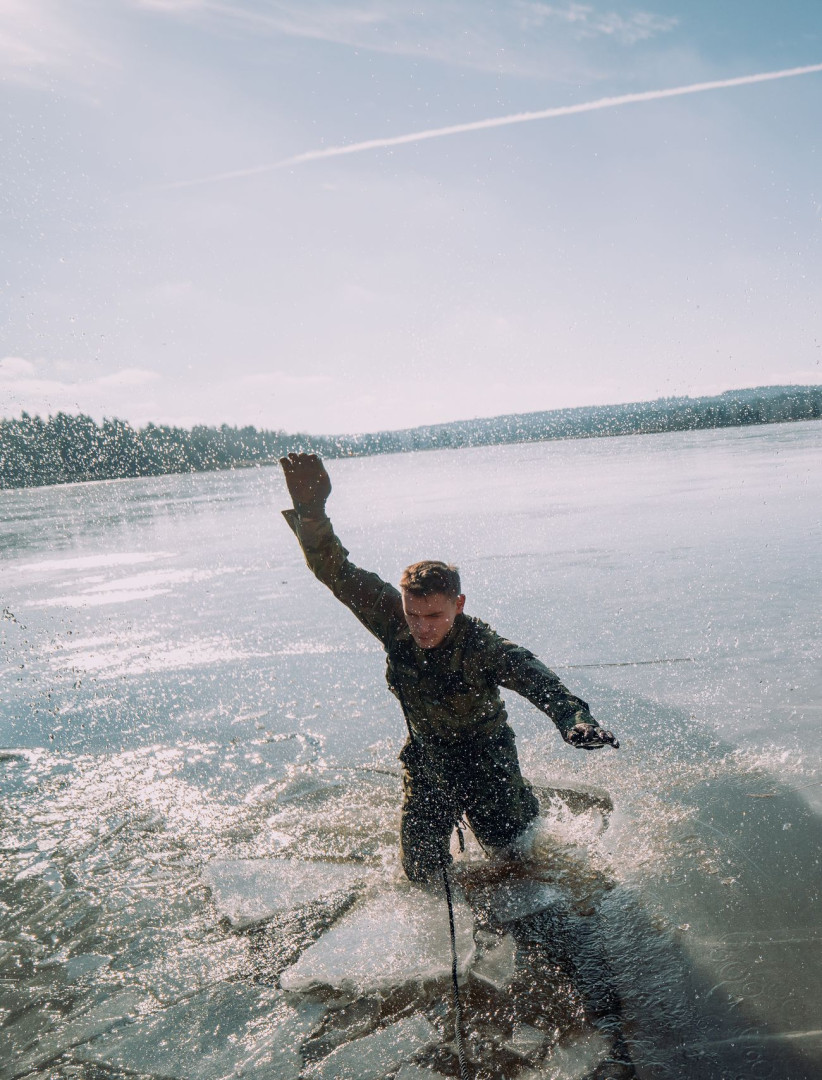 Voda byla opravdu studená a cvičící se museli zahřát improvizovaným způsobem, aby nedošlo k podchlazení