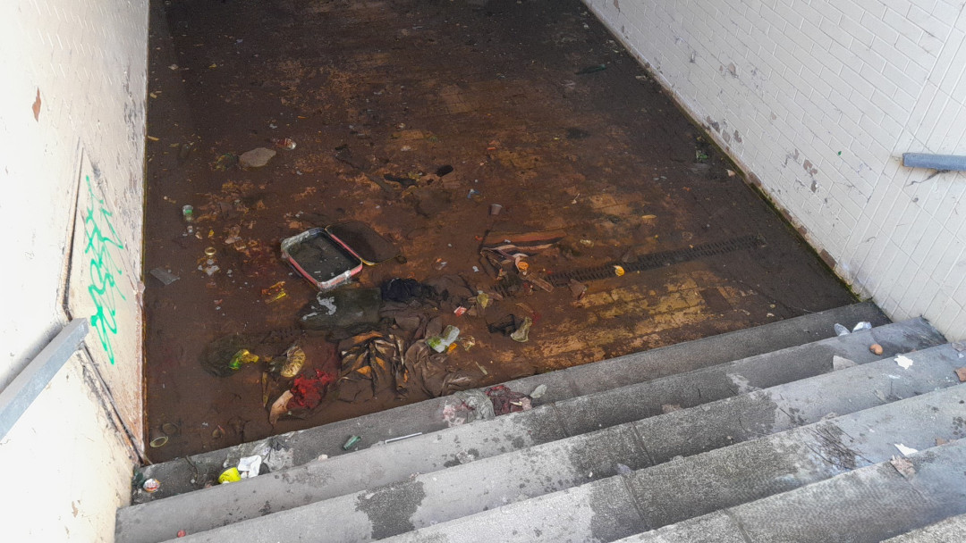 Mrtvý cizinec ležel v nechvalně proslulém podchodu u autobusového nádraží, místo bylo částečně zatopené
