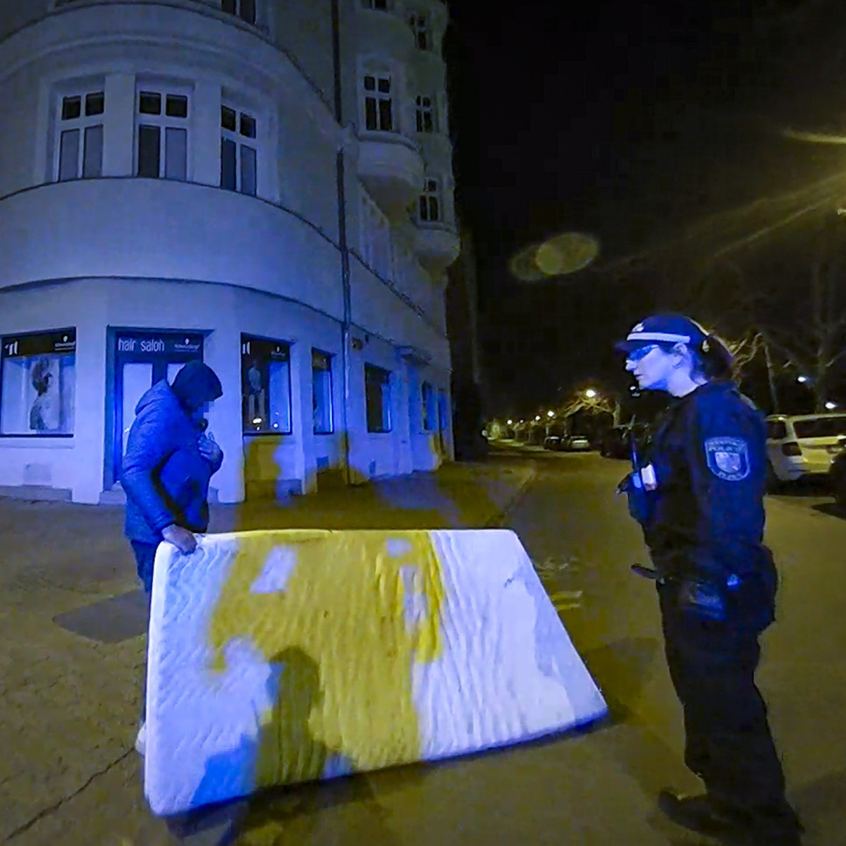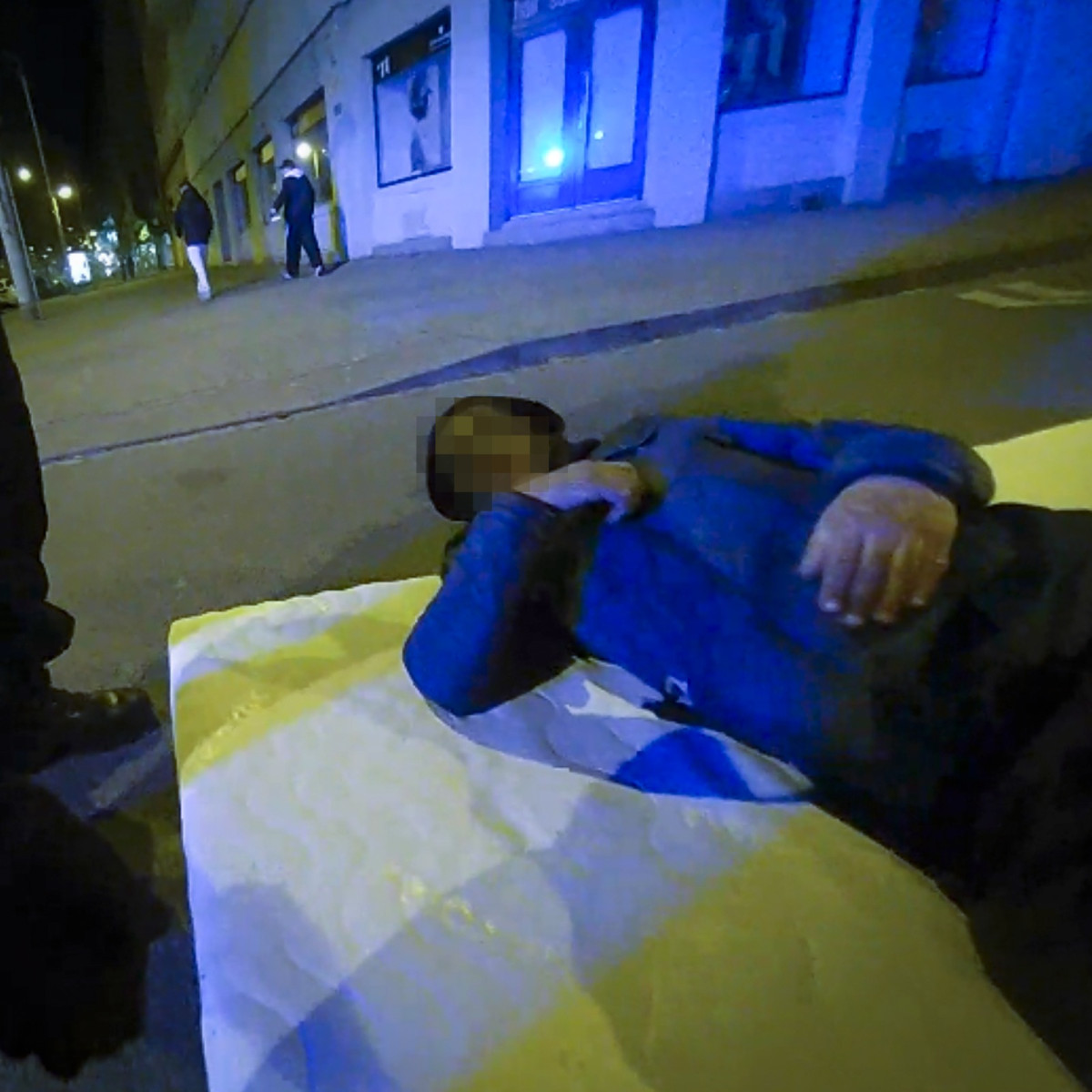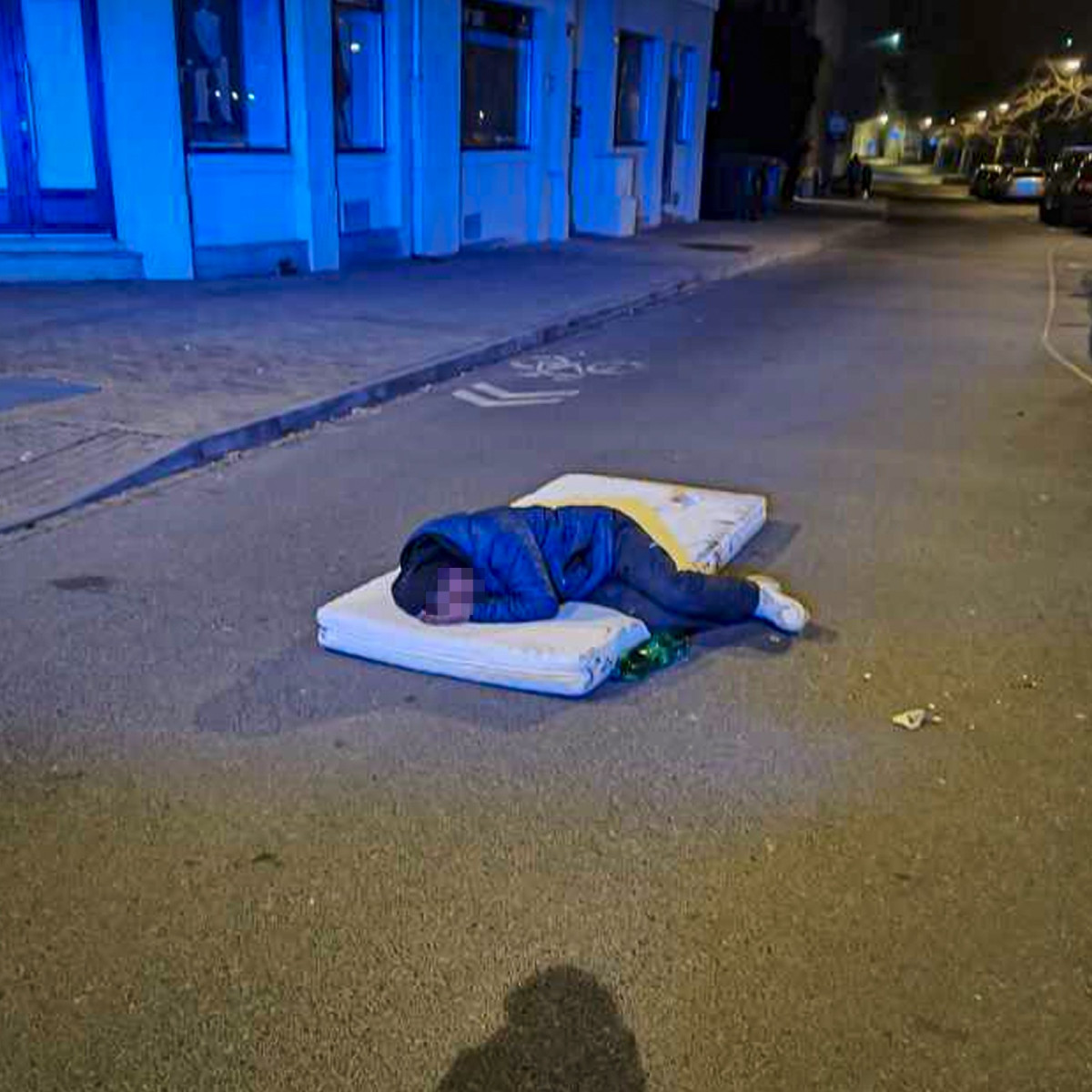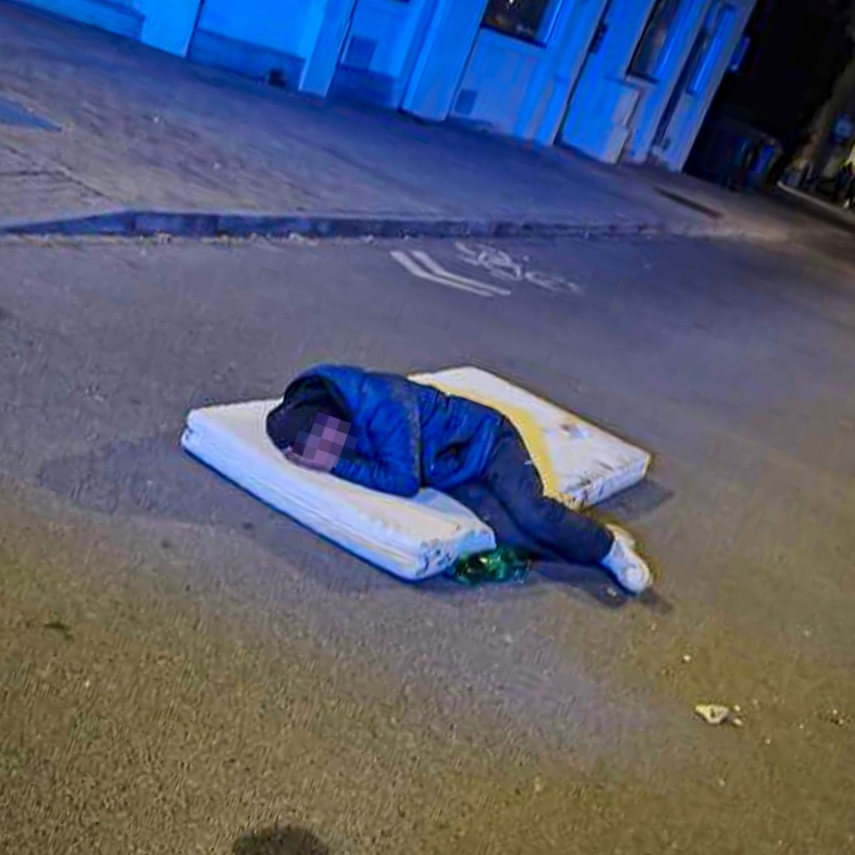 Muž spal tvrdě na matraci uprostřed ulice, kudy normálně projíždí auta. Nepřišlo mu to vůbec divné