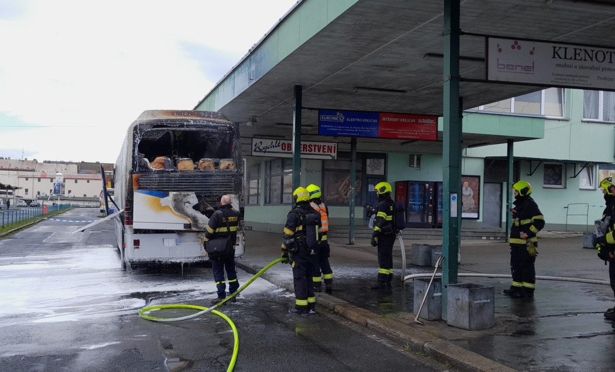 Autobus po příjezdu na centrální nádraží začal hořet. Plameny zničily nejen motor, ale i zadní část vozidla