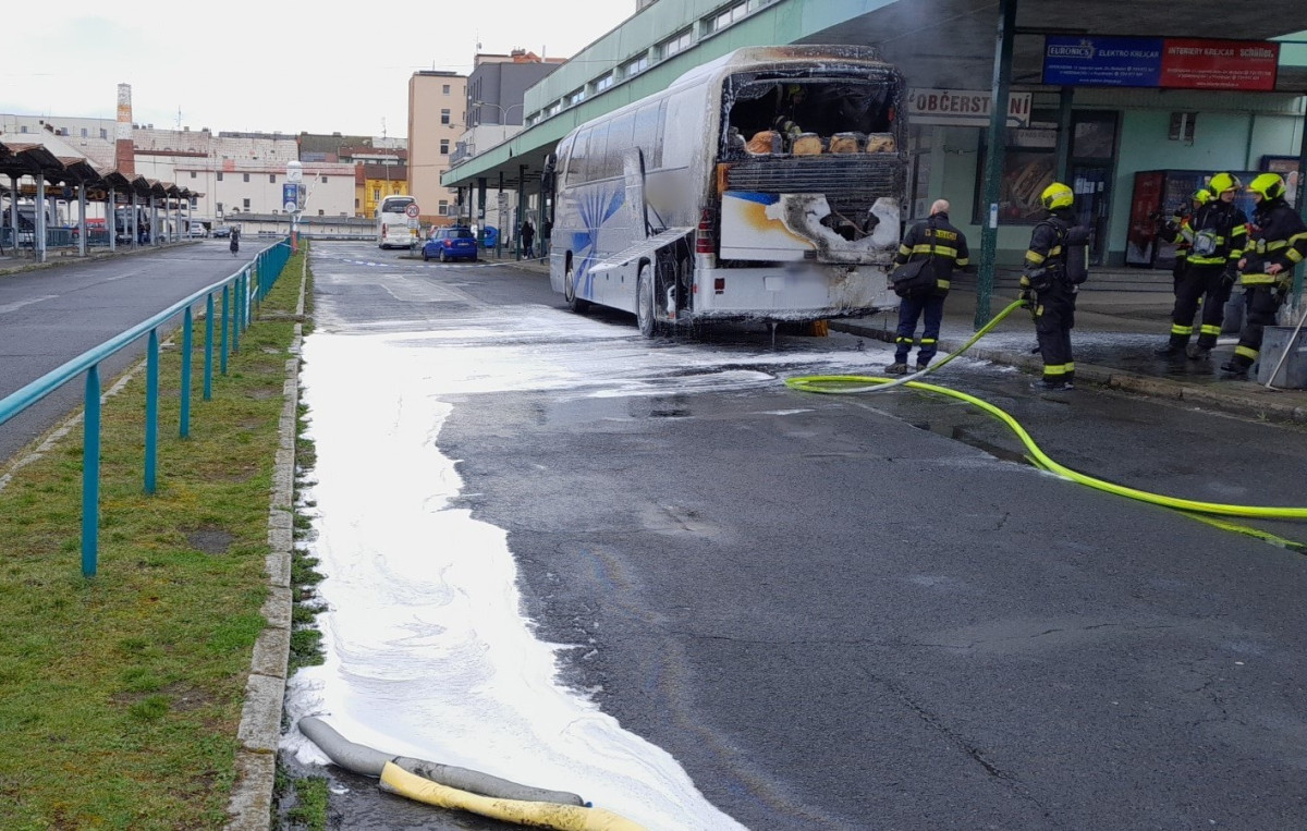 Autobus po příjezdu na centrální nádraží začal hořet. Plameny zničily nejen motor, poškodily i zadní část vozidla