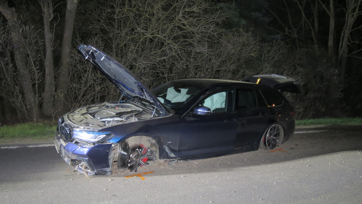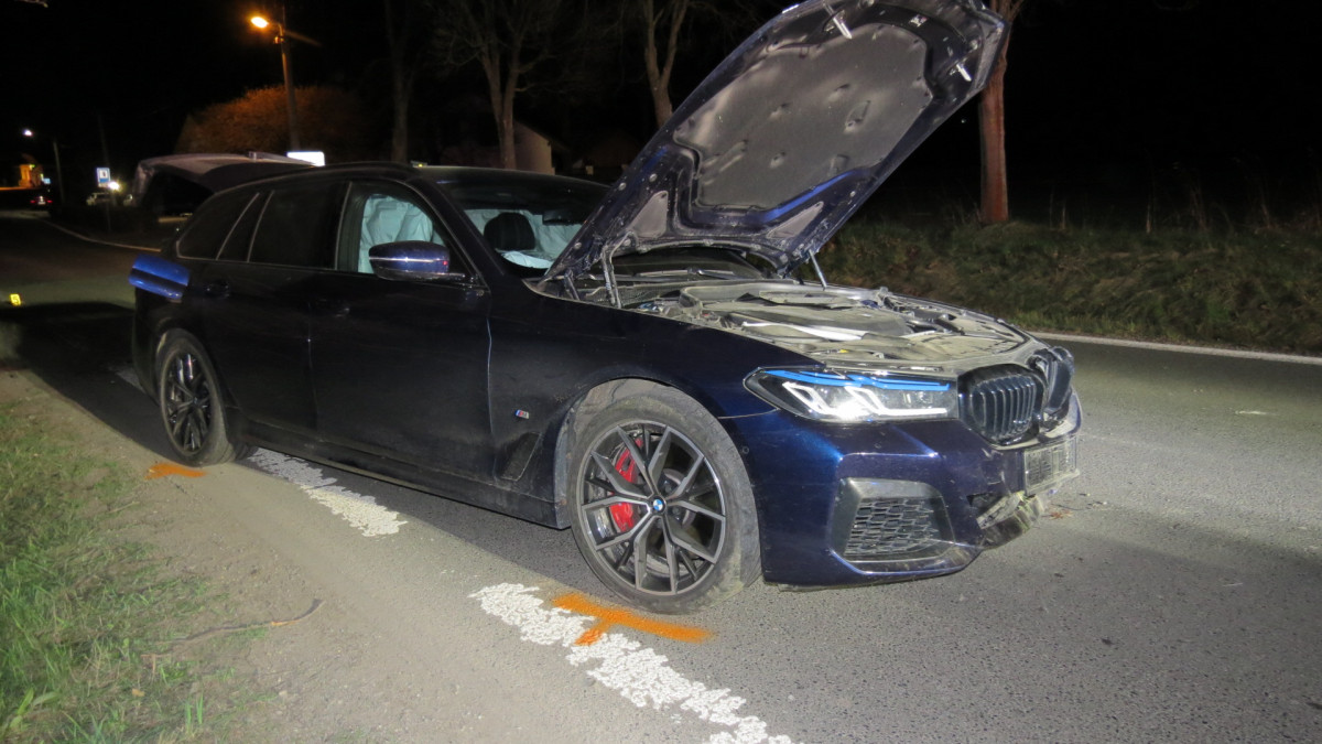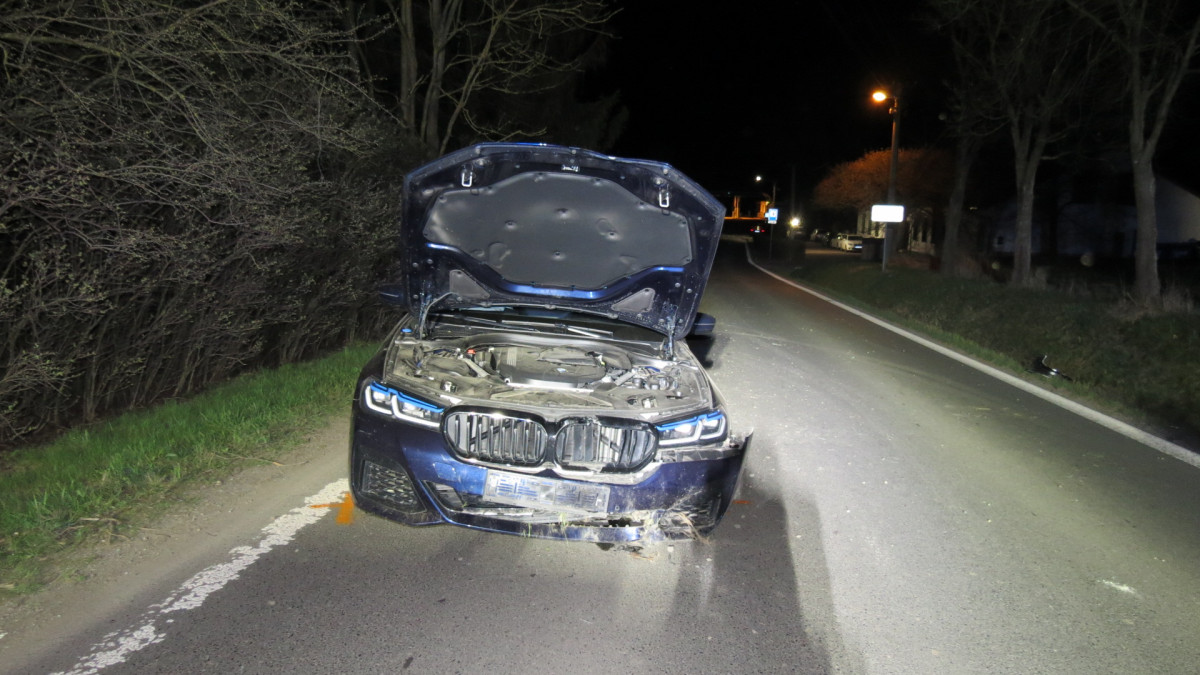 Opilý řidič BMW zdemoloval auto a proletěl cedulí na konci obce. Pak utekl domů, kde ho vypátral služební pes