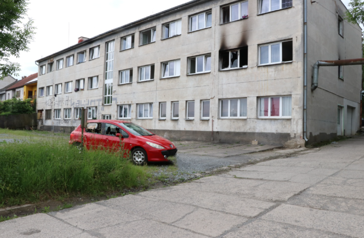 Ze msty muž zapálil ubytovnu, kladivem zdemoloval auto a ohrozil životy 68 lidí