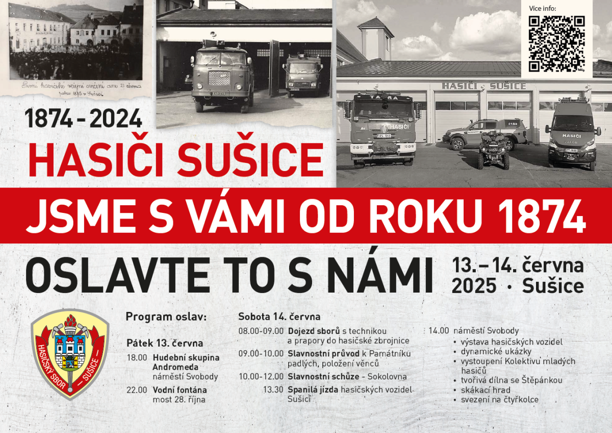 Sušičtí hasiči slaví 150 let a chystají vodní show i dynamické ukázky