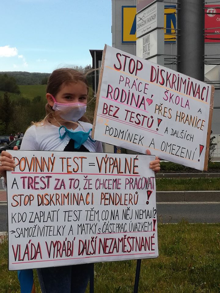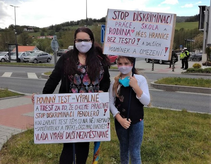 Pendleři na přechodu Folmava protestují proti povinné platbě za testy na koronavirus