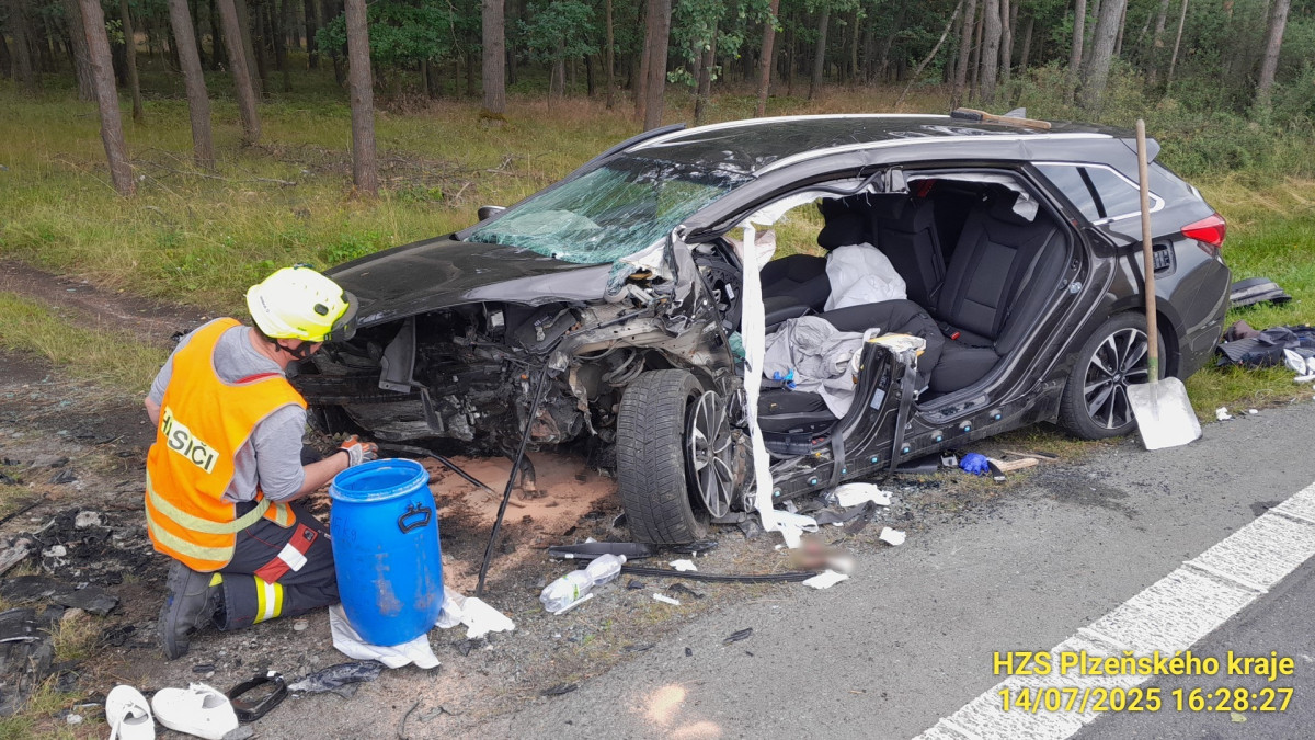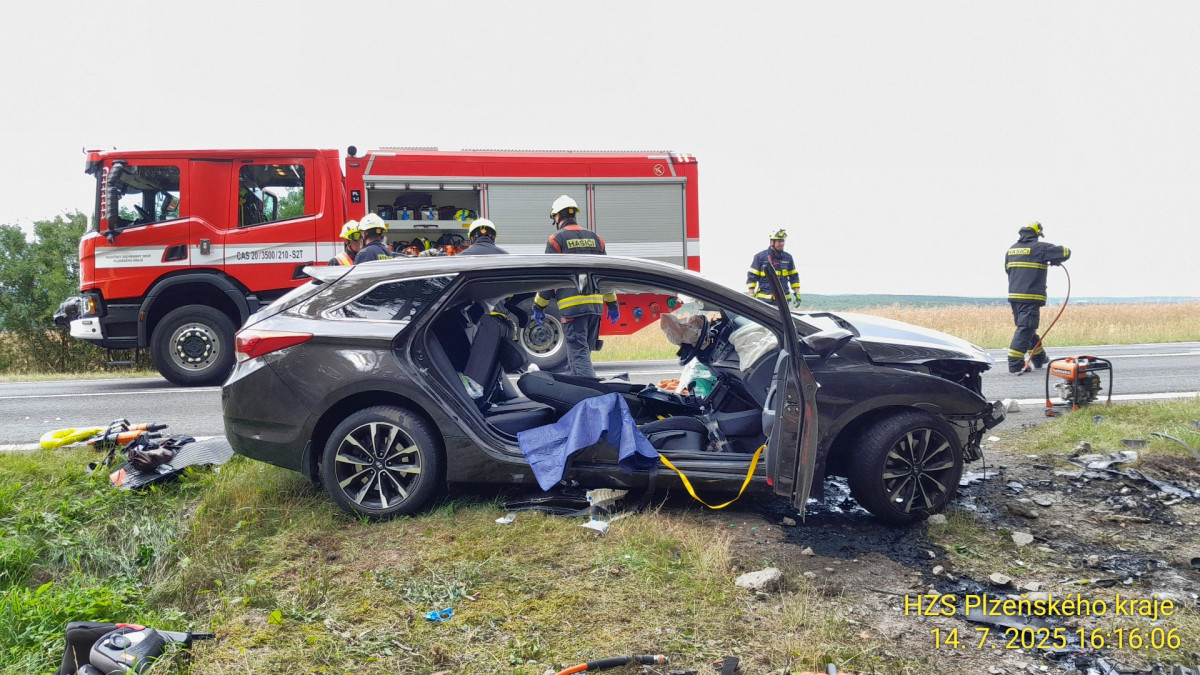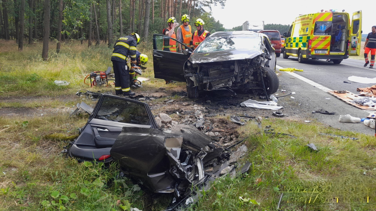 Při děsivé nehodě osobáku se vážně zranili dva dospělí a dítě. Auto narazilo do betonové propusti