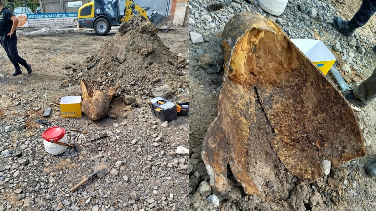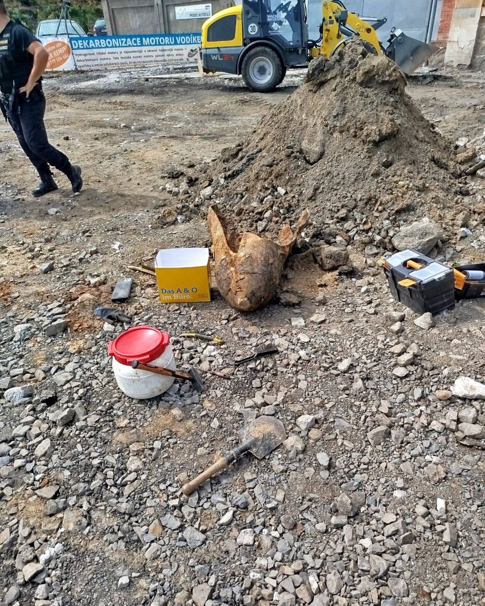 Torzo zápalné letecké pumy vykopali dělníci při opravě ulice. Jde o pozůstatek náletu na klatovské nádraží