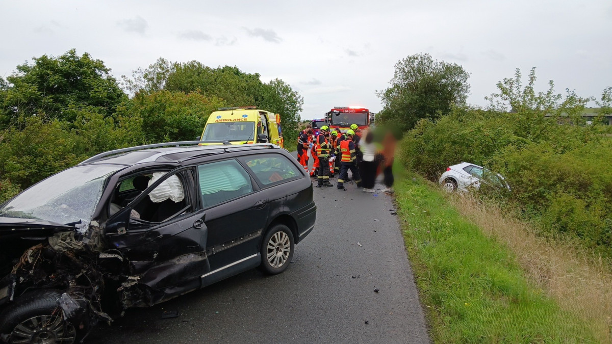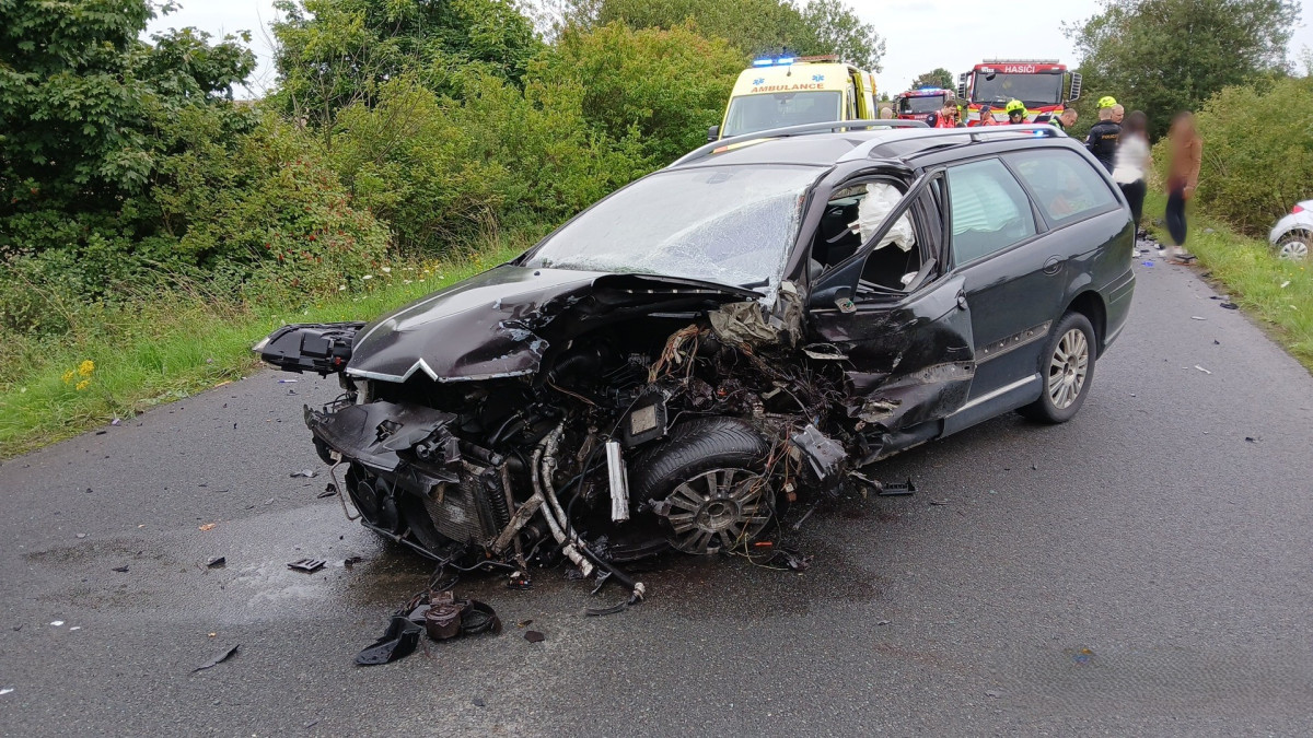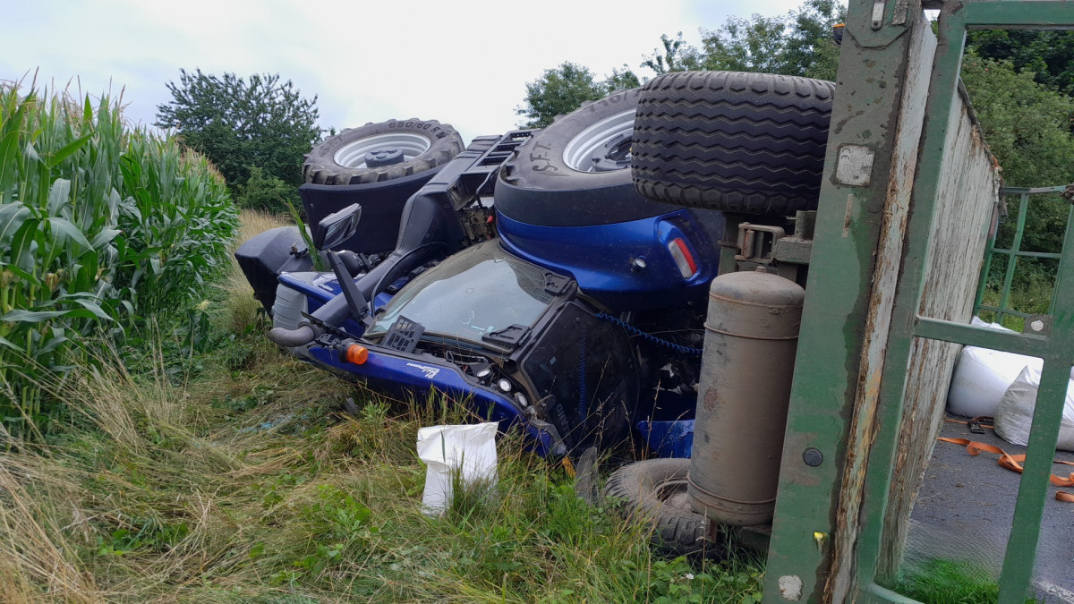 Převrácený traktor zcela zablokoval provoz na silnici u Plánice