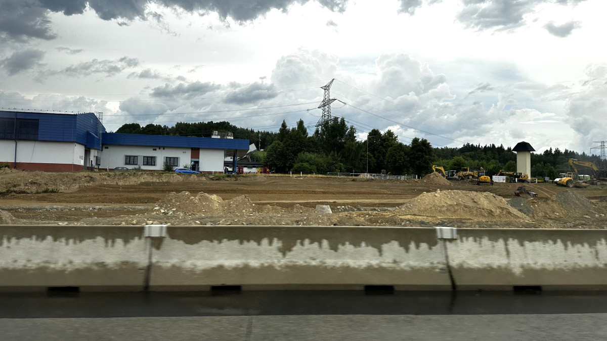 Stavba odpočívky na dálničním přechodu v Rozvadově