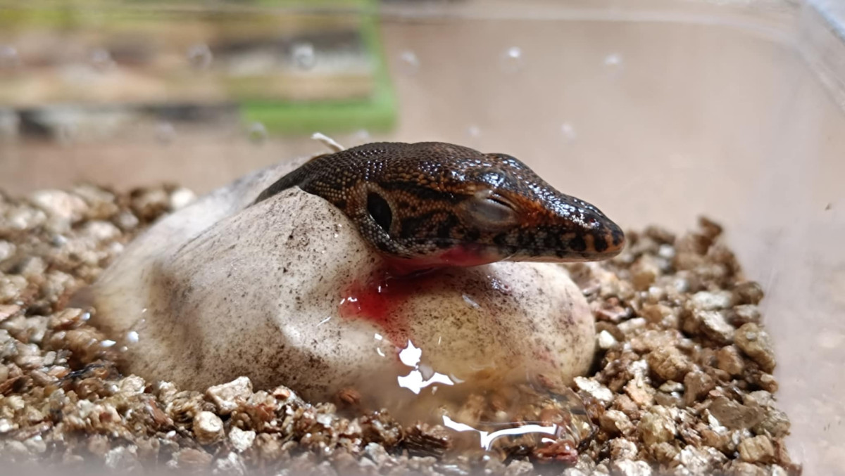 V zoo se vylíhla mláďata varana Mertensova, jejich délka je vůči vejci enormní