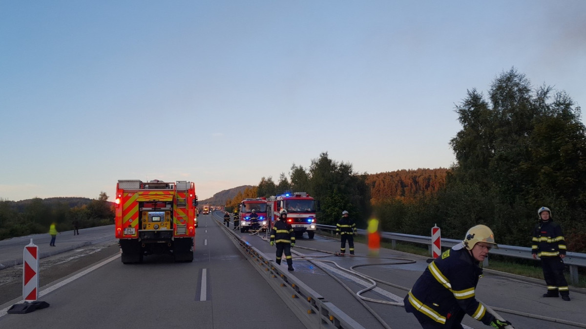 Masivní únik nafty z havarovaného kamionu ochromil provoz na dálnici D5