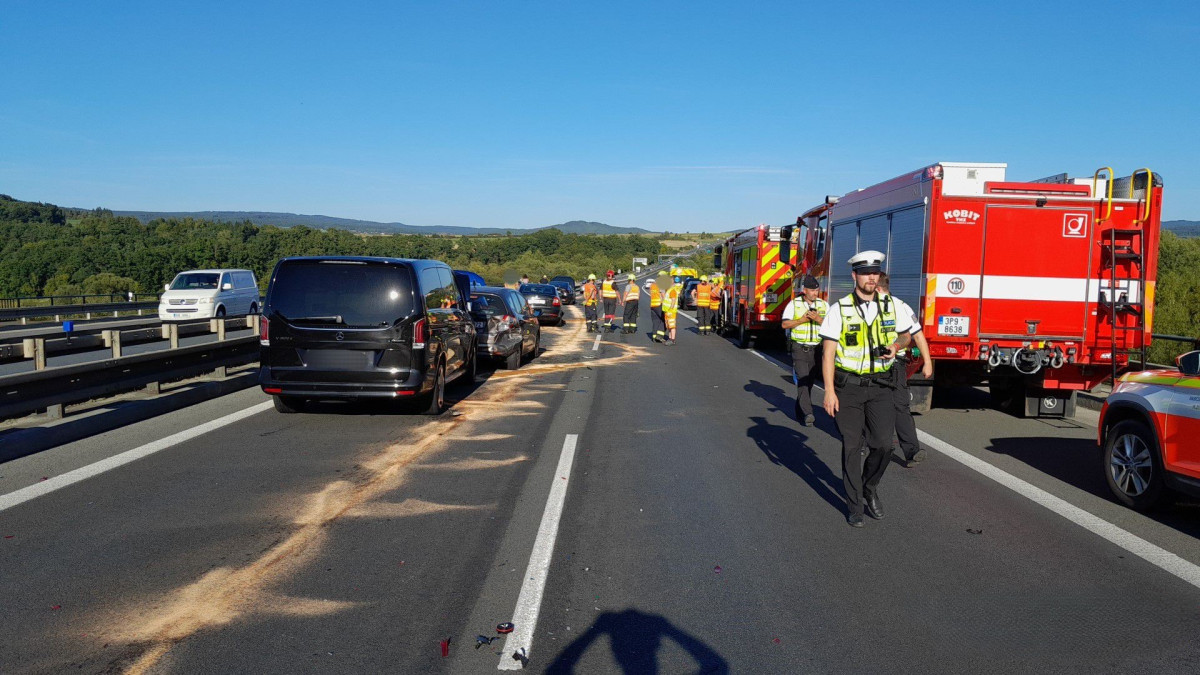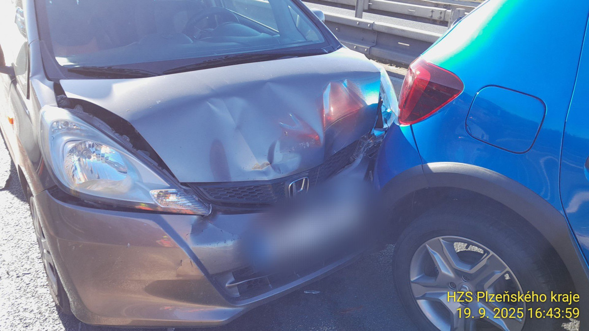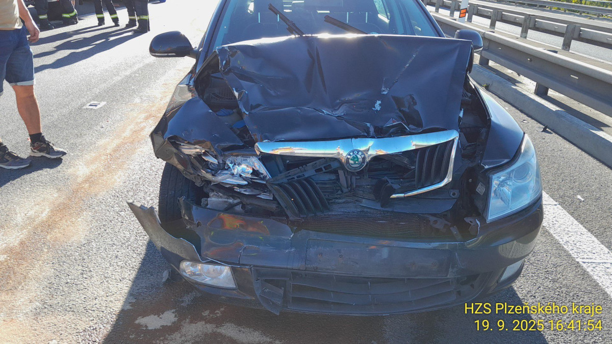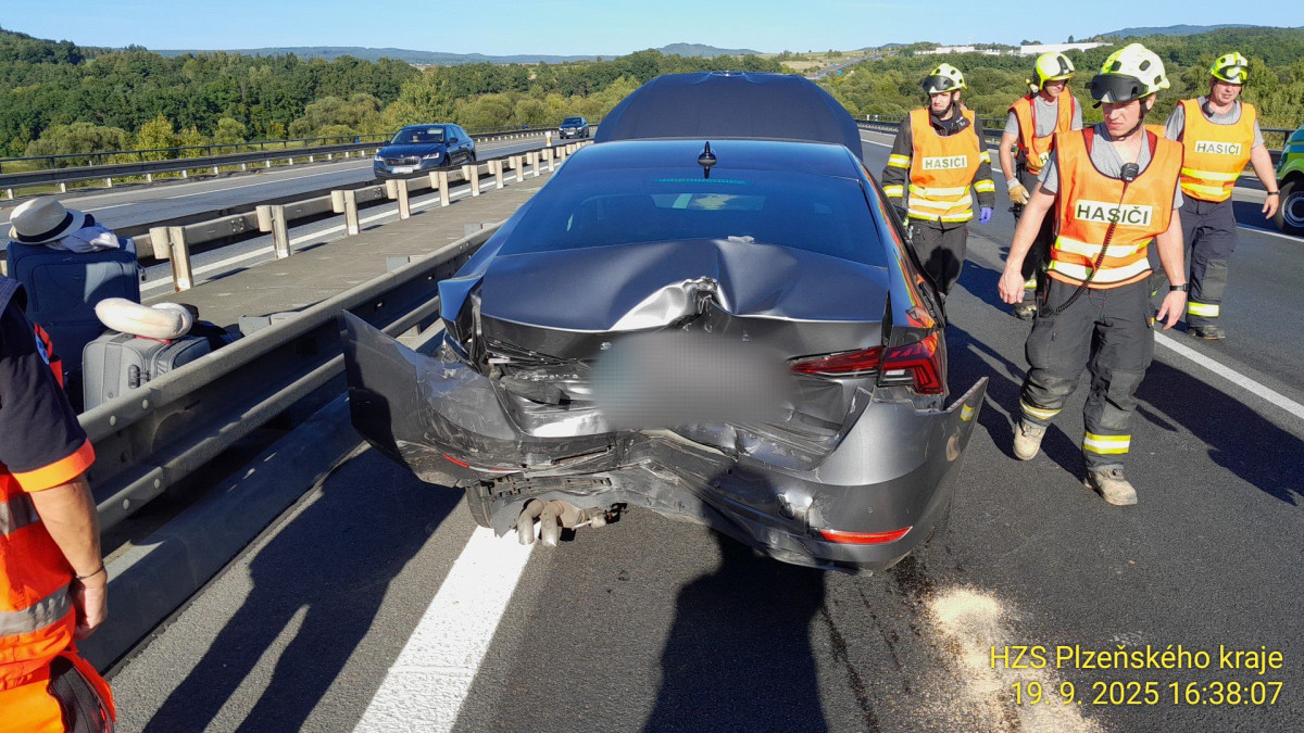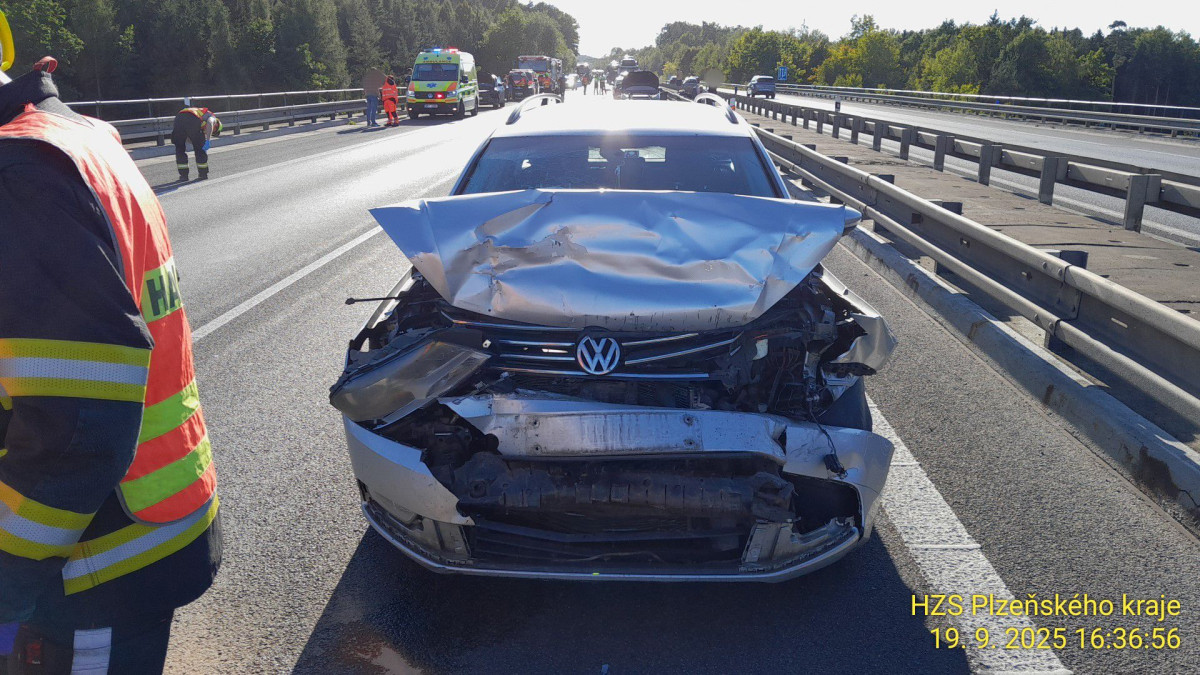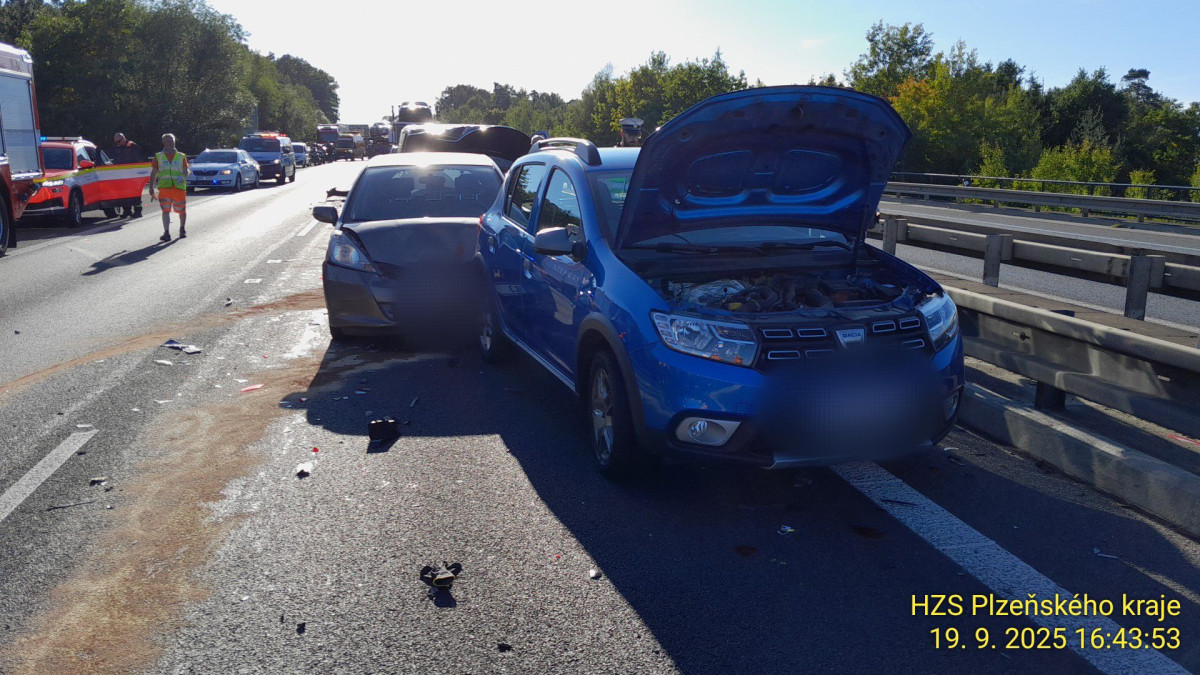 Hromadná nehoda osmi aut ochromila dálnici D5, čtyři lidé skončili v nemocnici