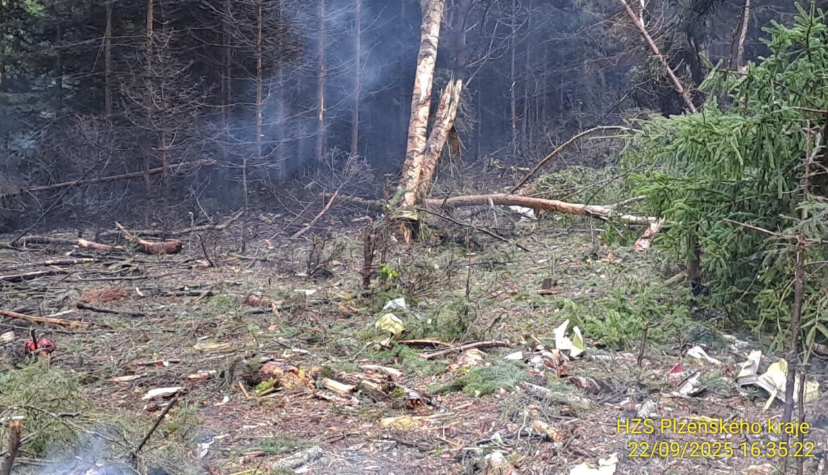 Menší letadlo se zřítilo na Plzeňsku do lesa a začalo hořet. Pilot zahynul v troskách