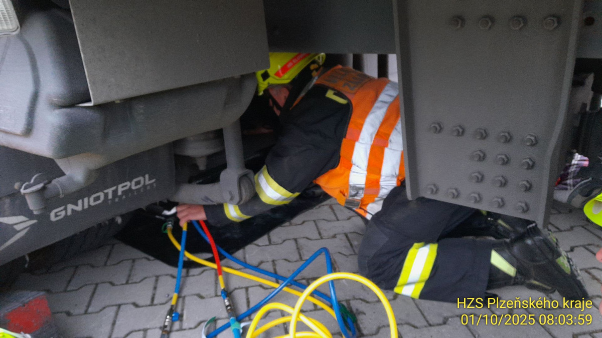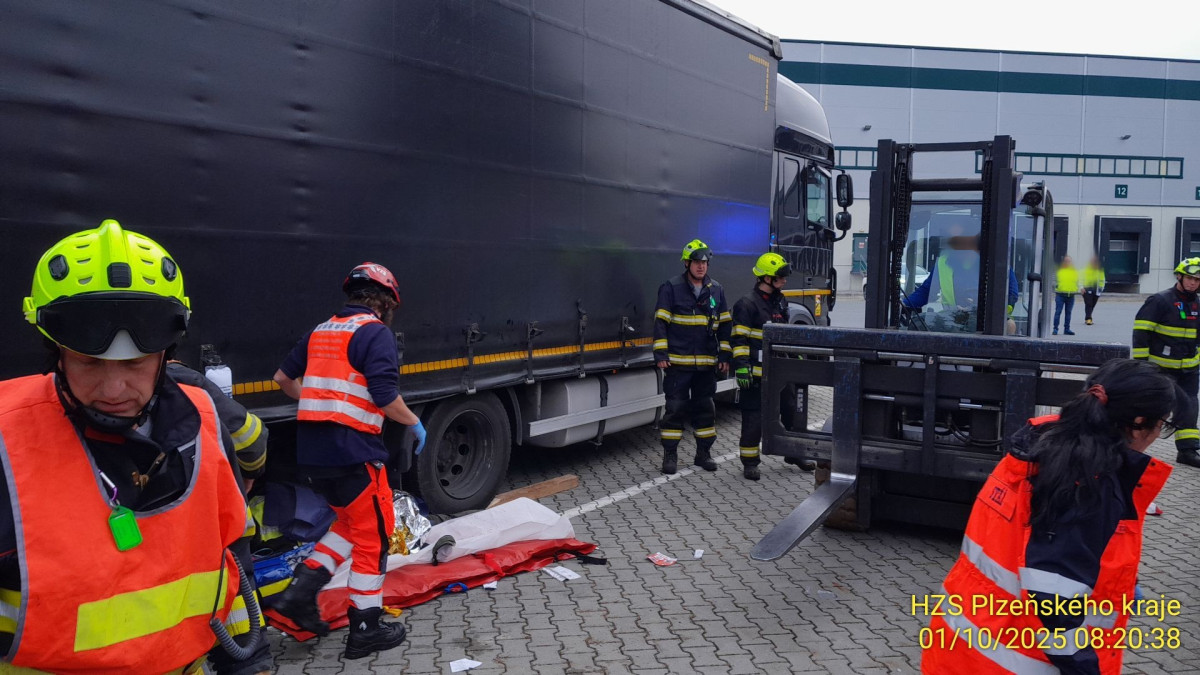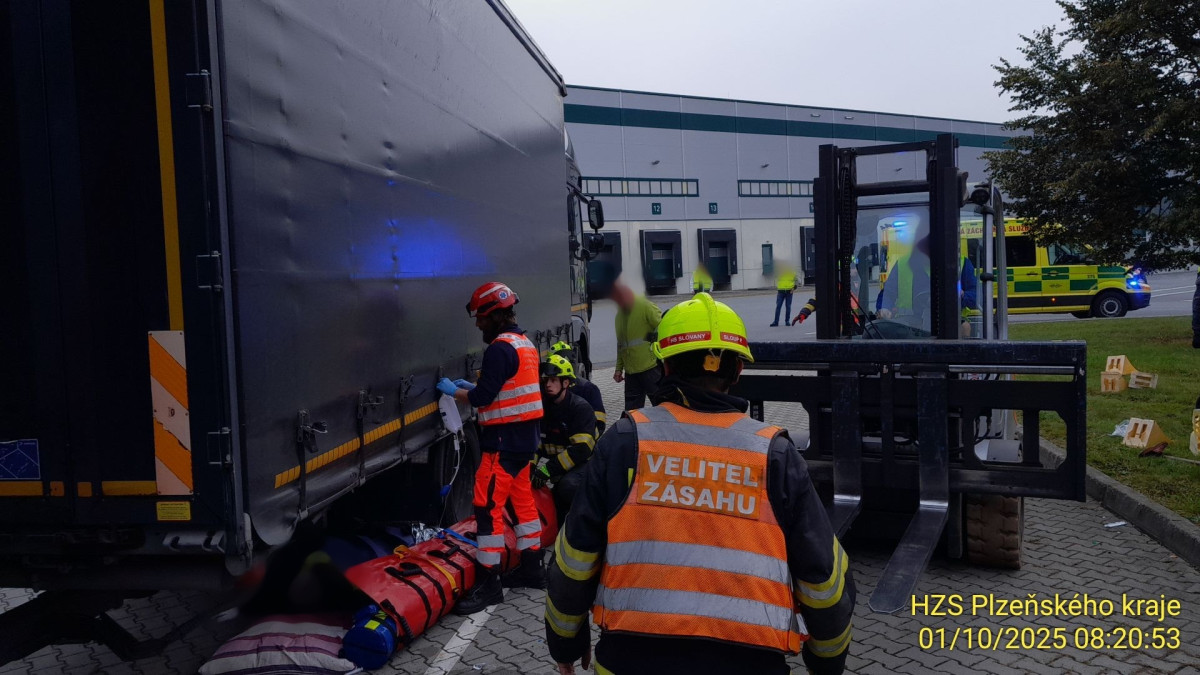 Muž utrpěl devastační zranění nohy, která se mu zaklínila pod kolem kamionu