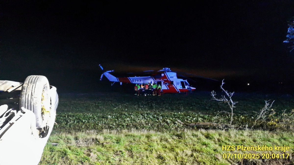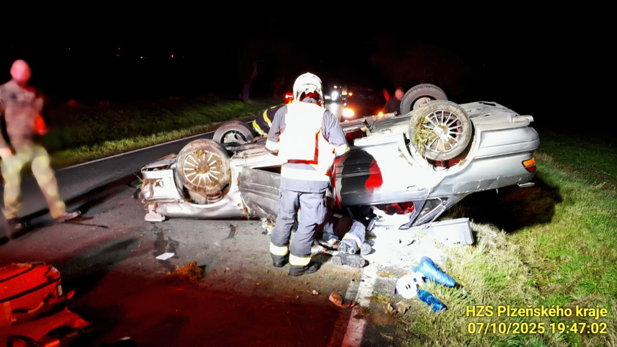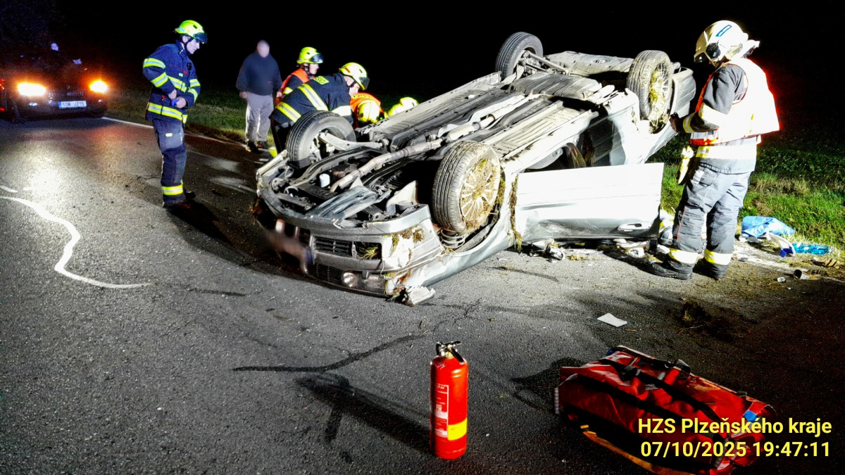 Auto vyletělo ze silnice, narazilo do stromu a převrátilo se. Řidič byl opilý