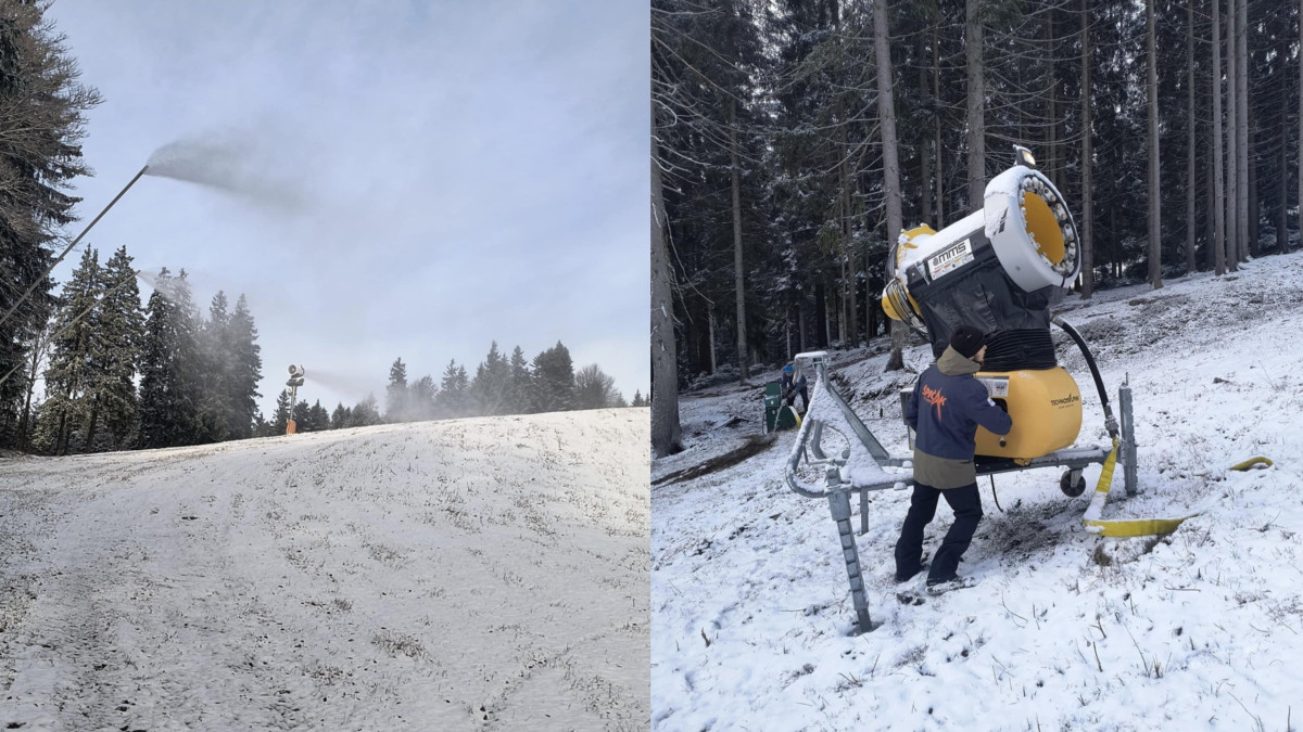 Sněžná děla už díky mrazu chrlí technický sníh na sjezdovkách šumavského Špičáku