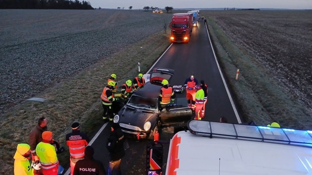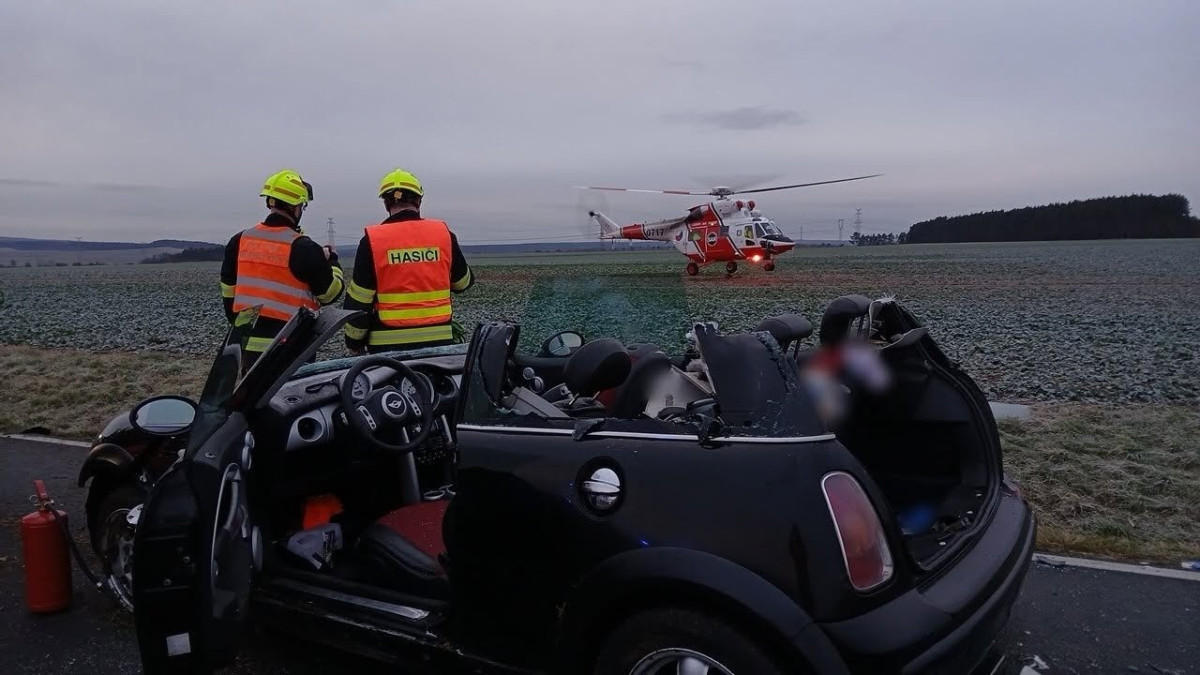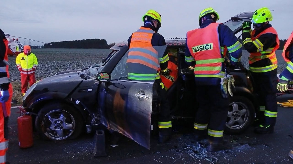 Vážná nehoda osobáku, hasiči museli při vyprošťování řidičky odříznout střechu auta