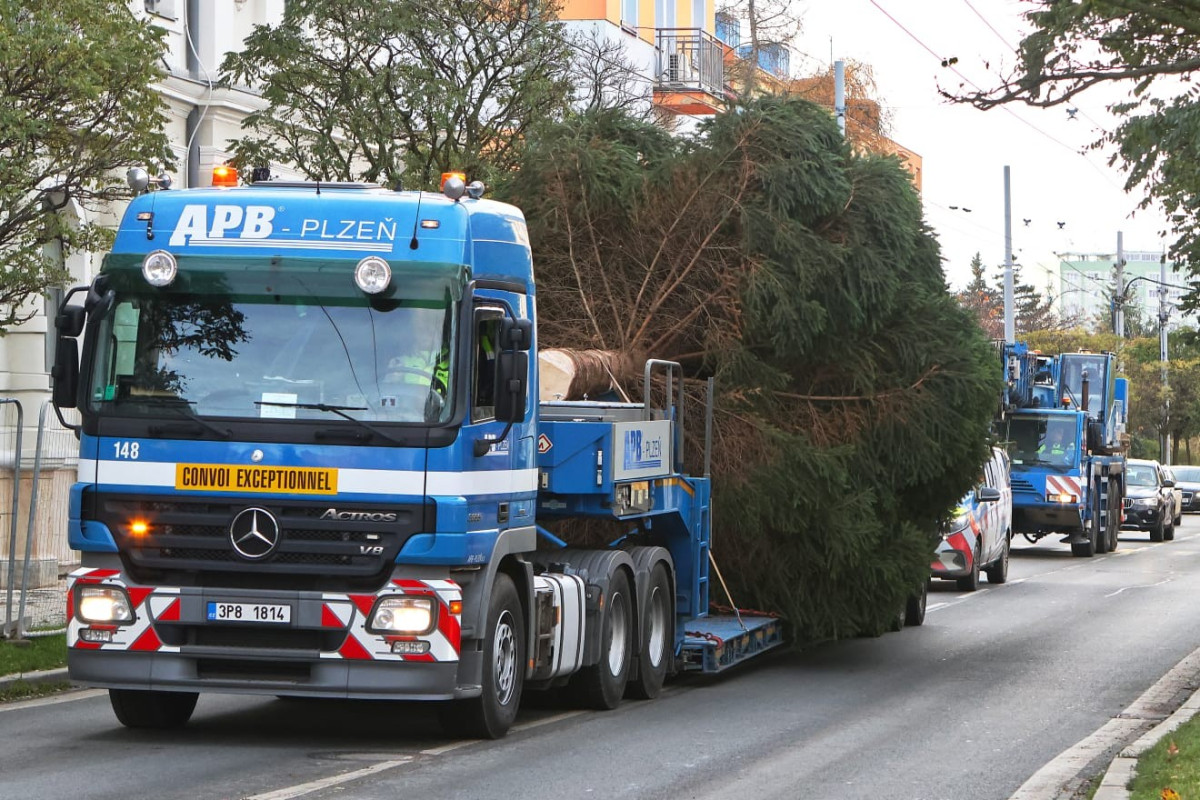 FOTO: Čtyřka už má na místě letošní vánoční strom. Podívejte se na jeho převoz