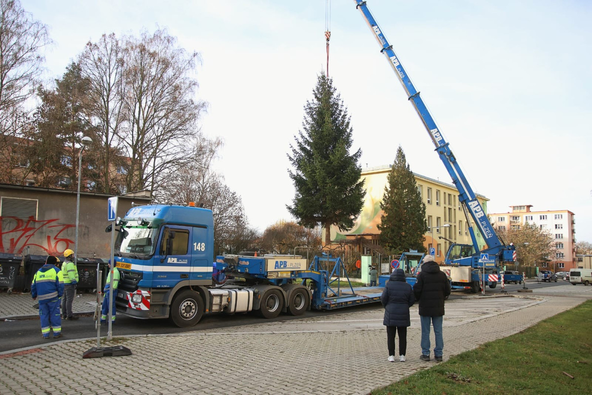 Čtyřka už má na místě letošní vánoční strom. Podívejte se na jeho převoz