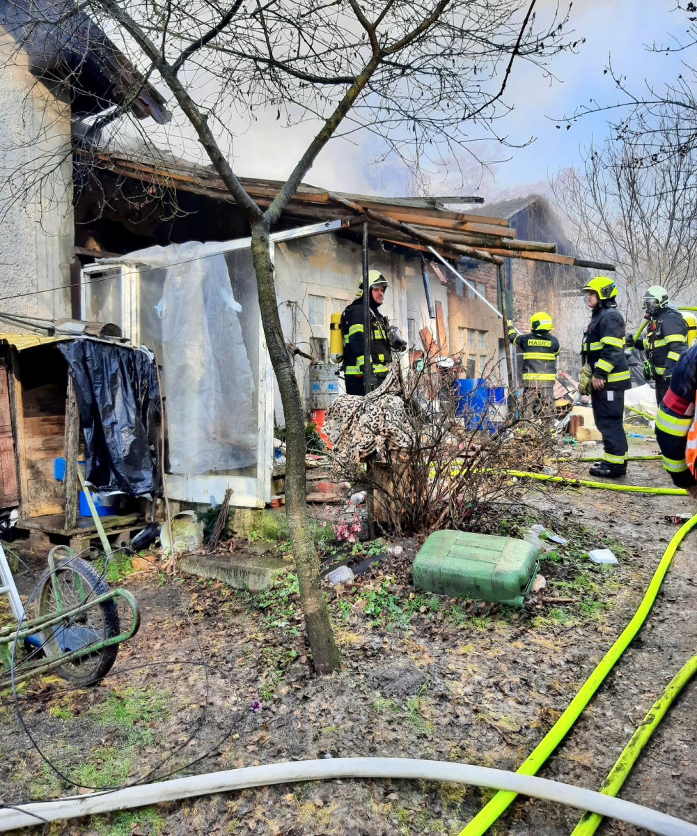 Deset jednotek bojuje s požárem drážního domku. Byl vyhlášený druhý stupeň poplachu