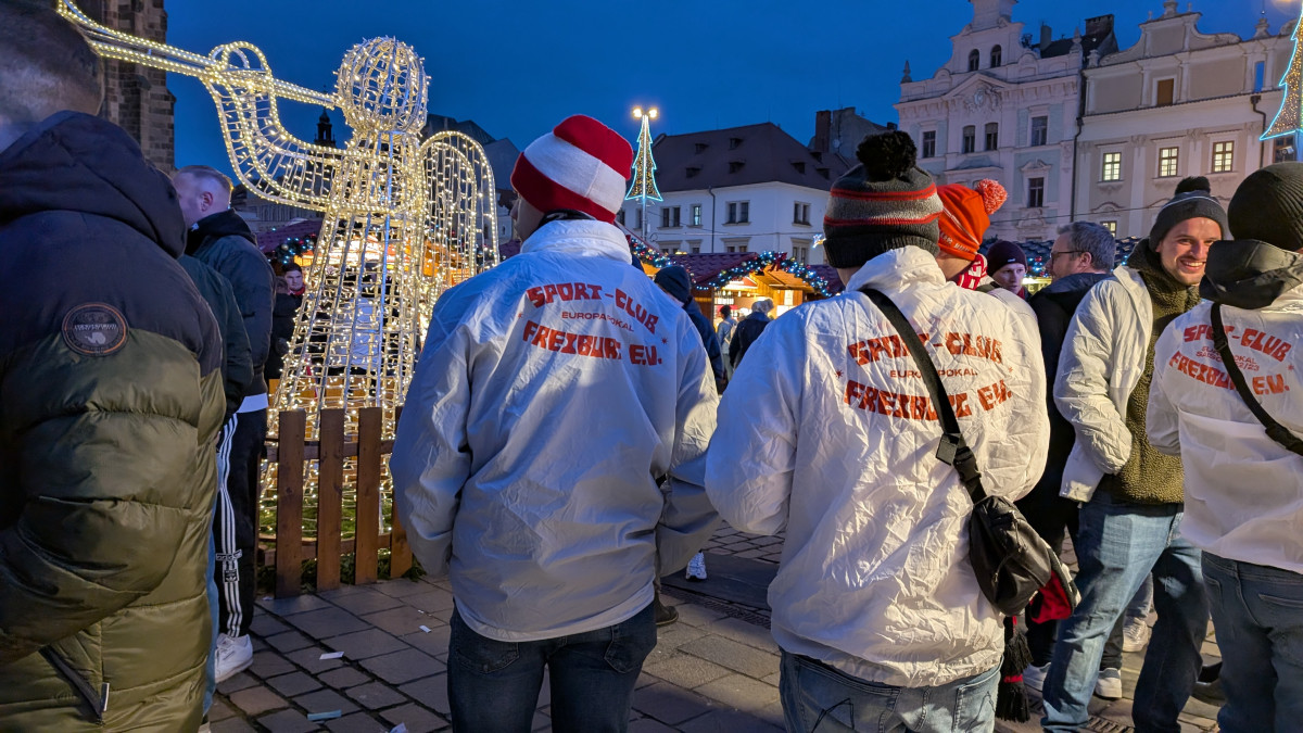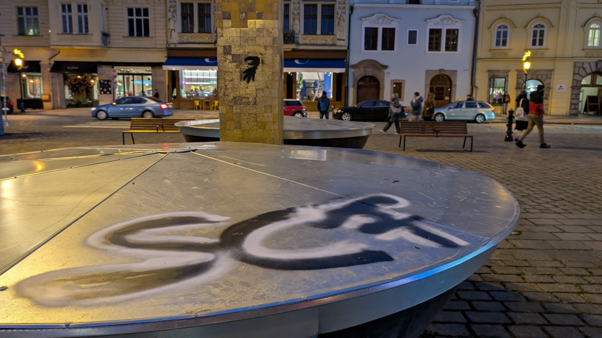 Němečtí fotbaloví fanoušci řádí v ulicích, posprejovali i zlacenou kašnu na náměstí