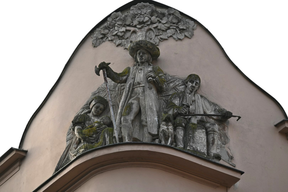 V Plzni připomíná Kozinu například reliéf v arkádě rohového domu na Chodském náměstí.