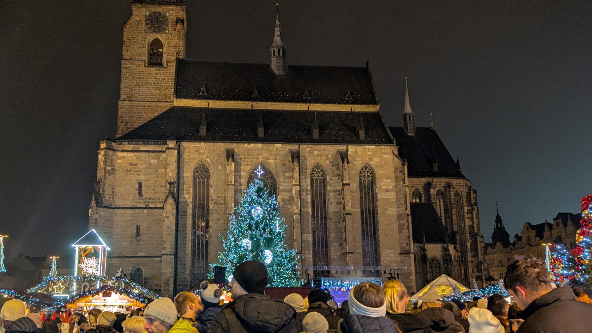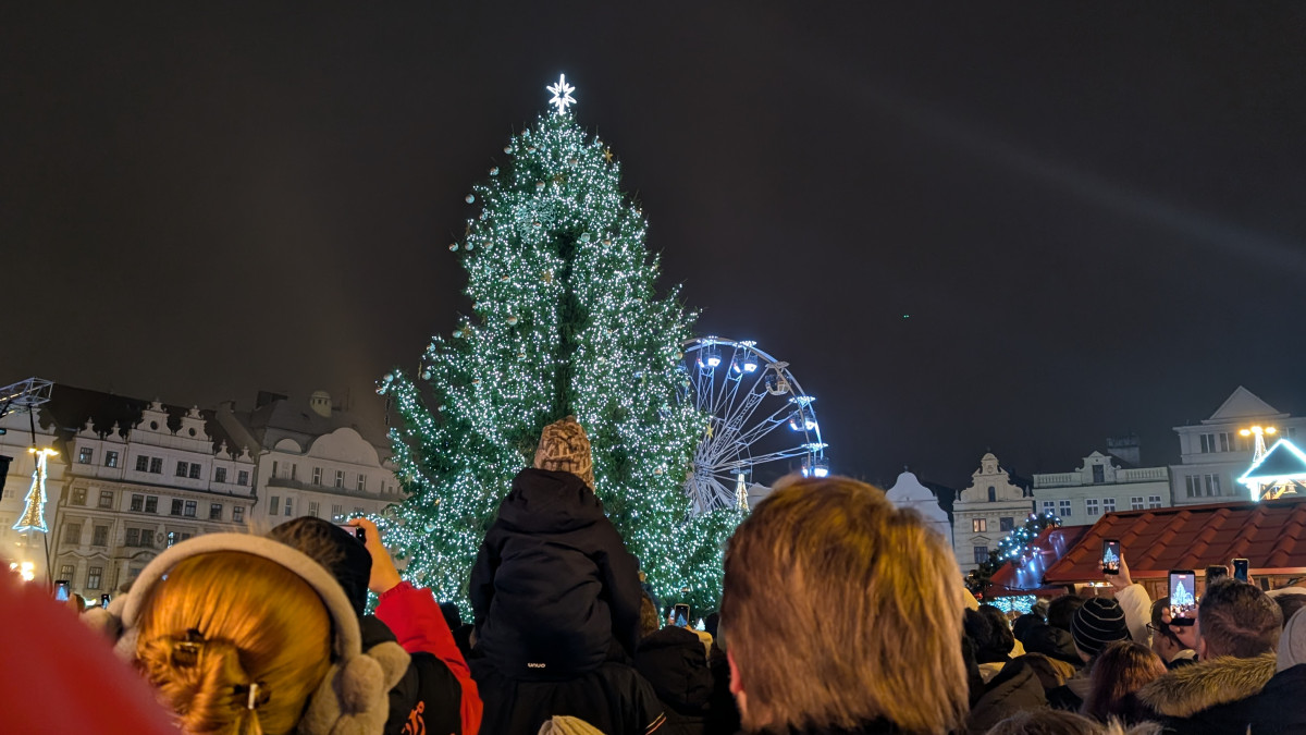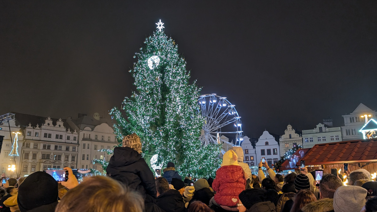 Vánoční strom už září pod katedrálou, rozsvícení sledovalo zcela zaplněné náměstí
