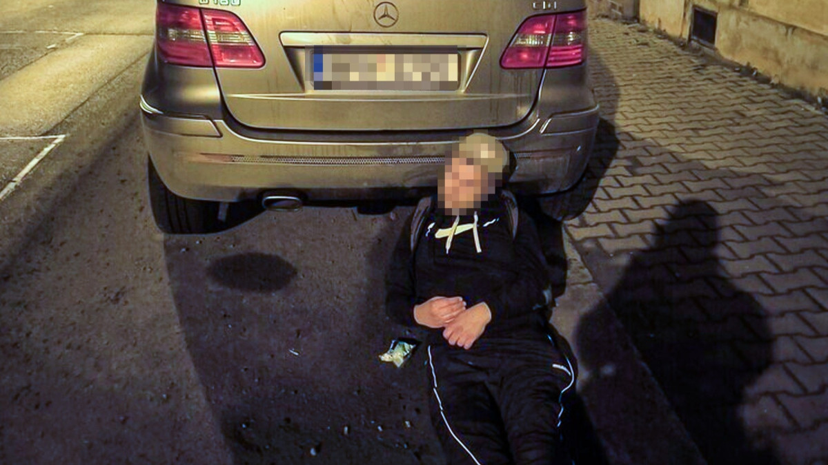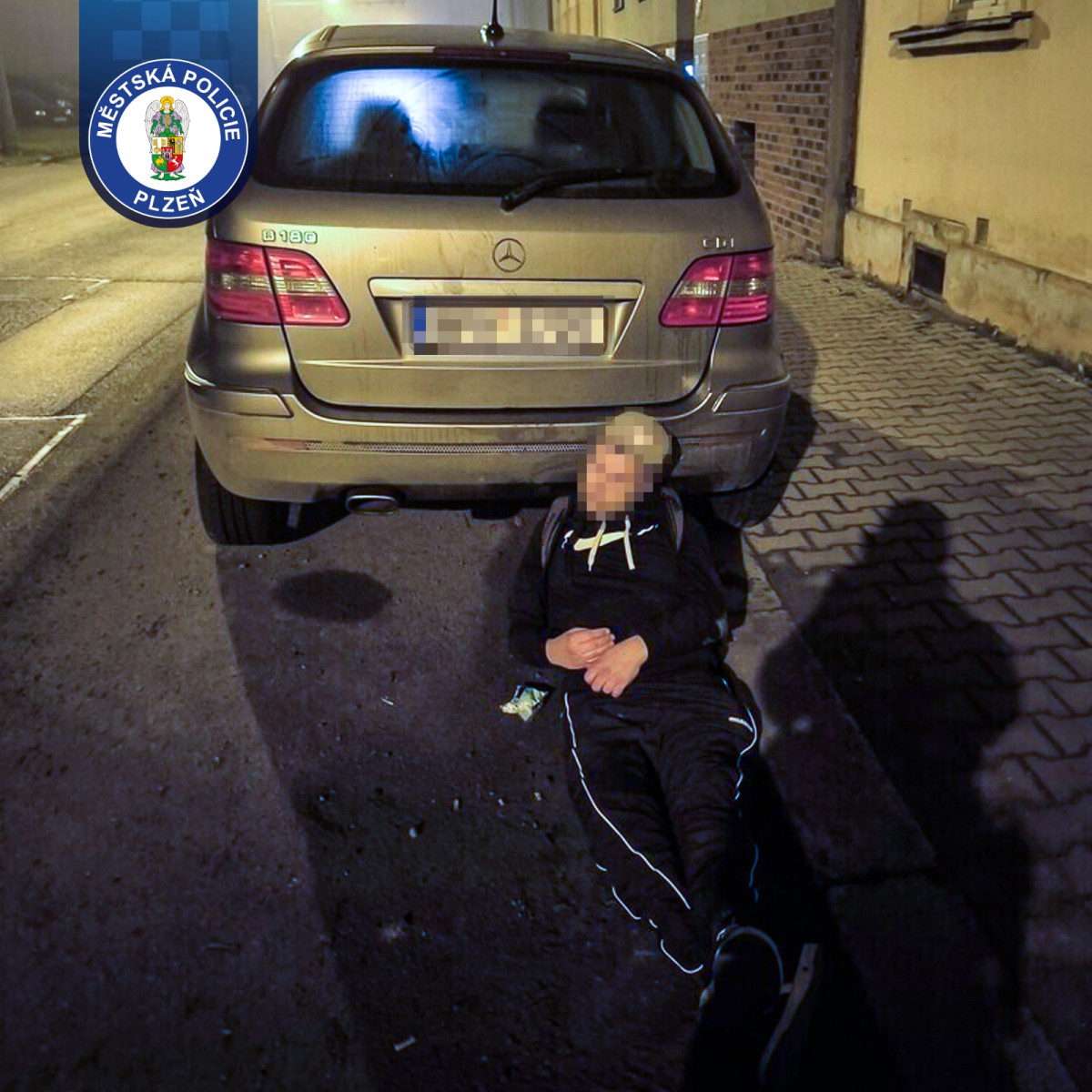 Opilý muž vyděsil kolemjdoucí, zalezl si pod zaparkované auto a zasekl se tam