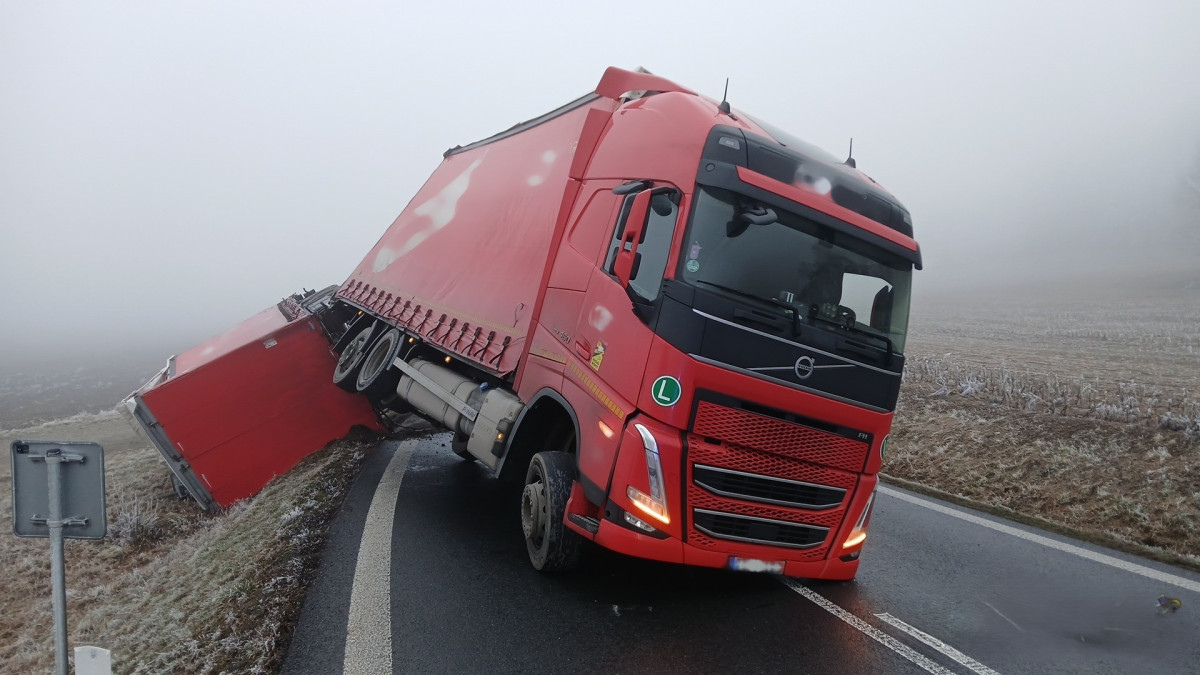 Ranní trable na silnici I/22. Dva kamiony havarovaly jen pár kilometrů od sebe