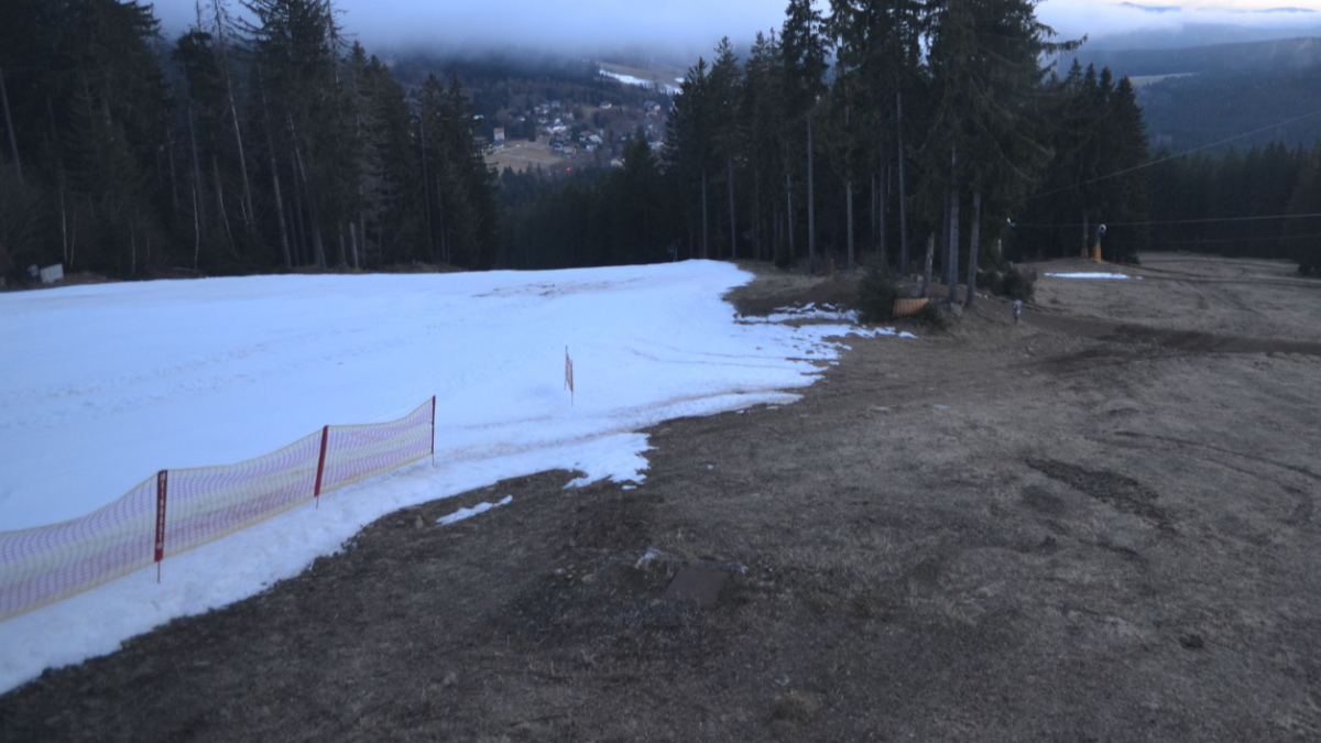 Na sjezdovce trojka - Slalomová se i přes inverzi podařilo udržet dostatečnou vrstvu sněhu