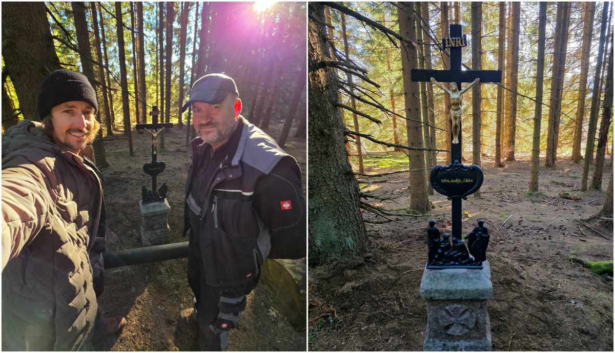 Nadšenec ze Šumavy našel zbytky starého podstavce pod kříž a nechal ho obnovit
