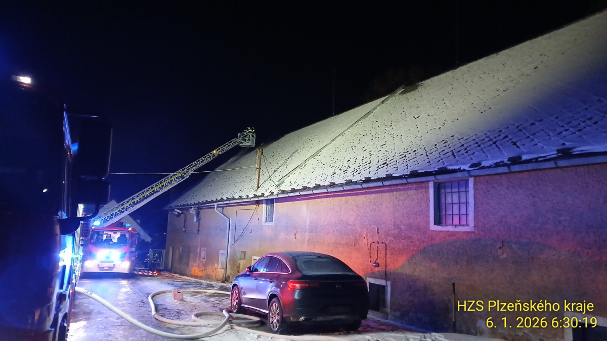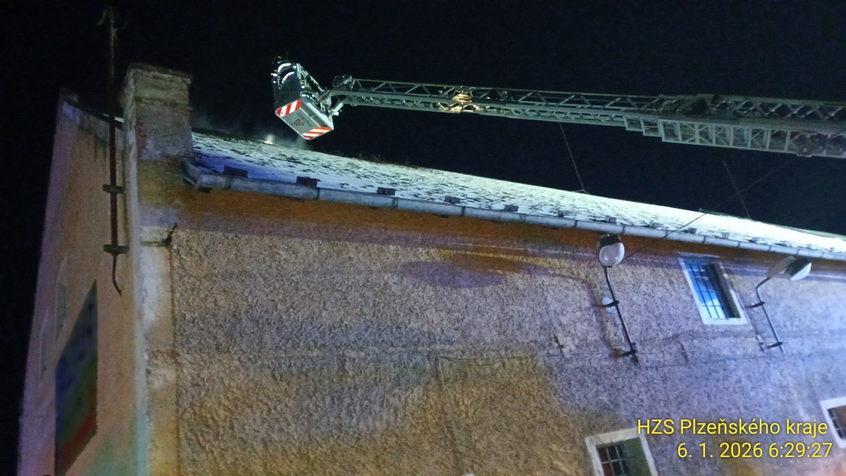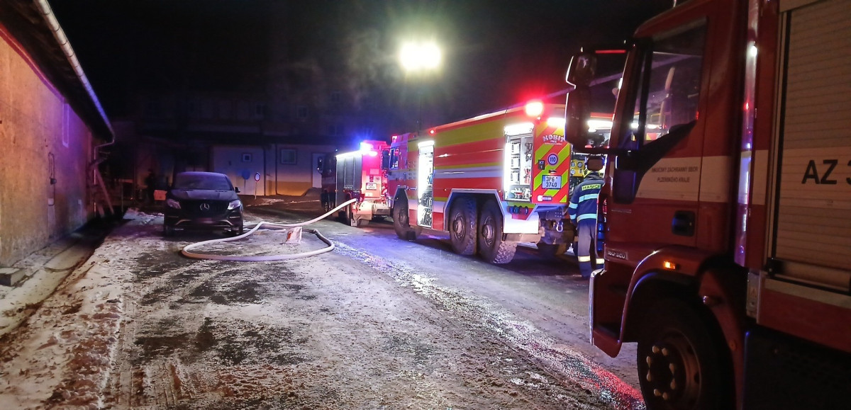 Plameny pohltily dům, který slouží i jako sklad nábytku. Hasiči museli rozřezat mříže