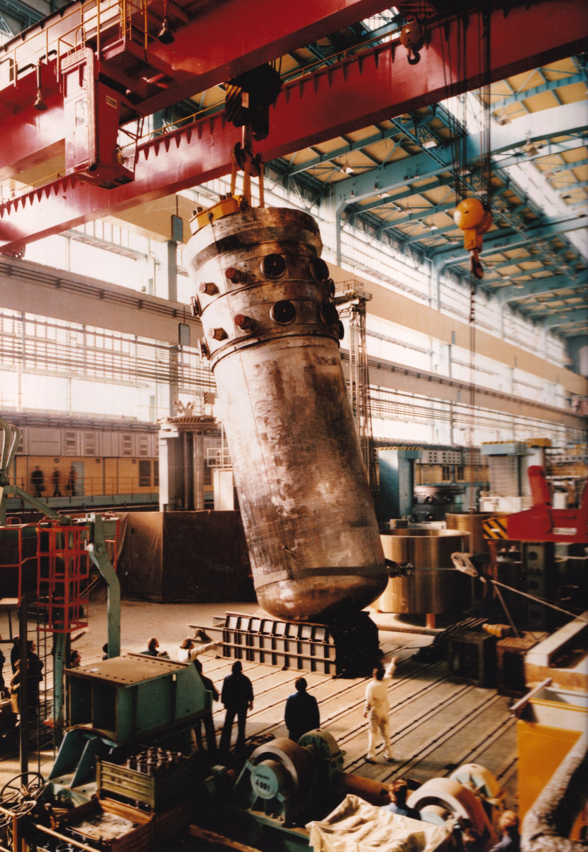 Tlaková nádoba reaktoru VVER-440 v Reaktorové hale (osmdesátá léta 20. století)