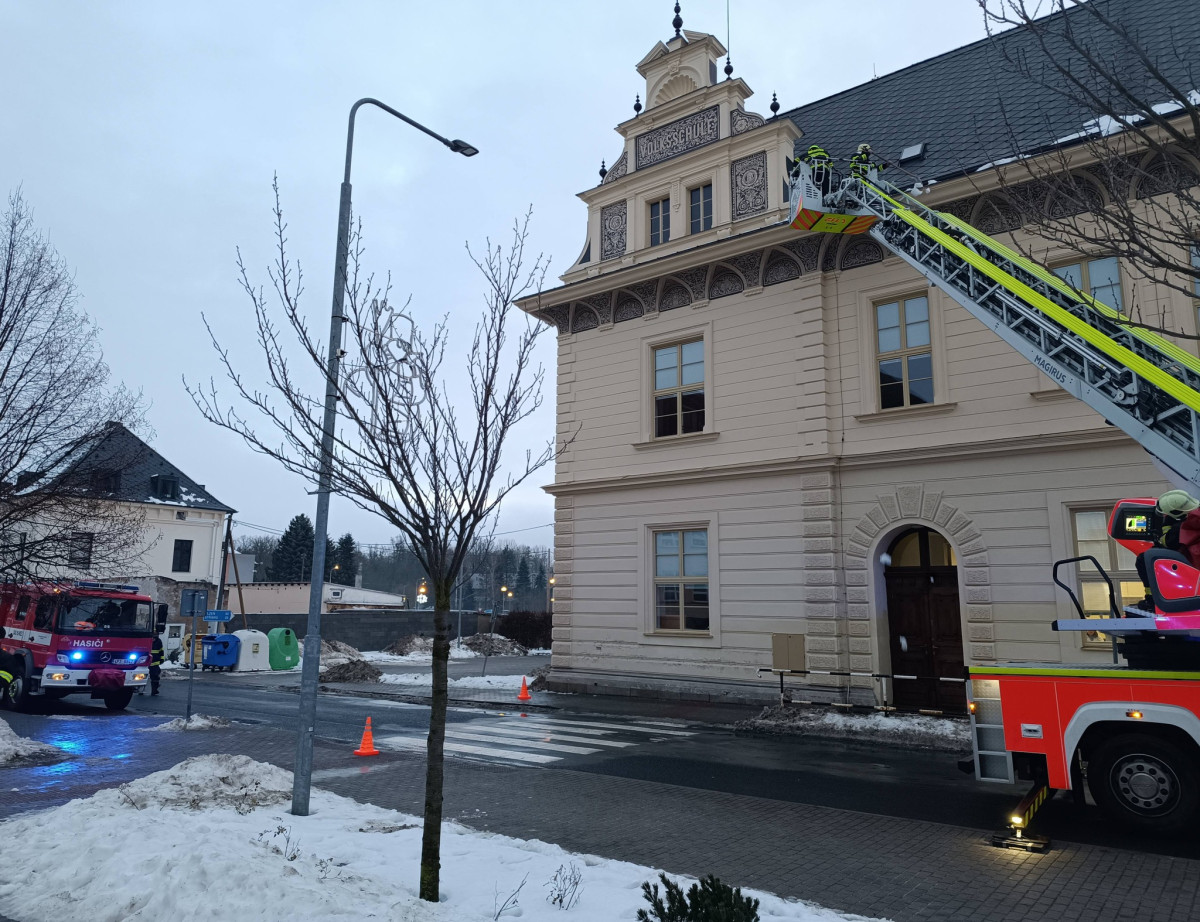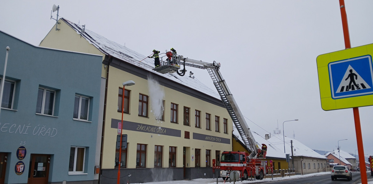 Hasiči v Boru na Tachovsku zase odklízeli sníh ze střechy mateřské školy, foto: Hasiči Bor