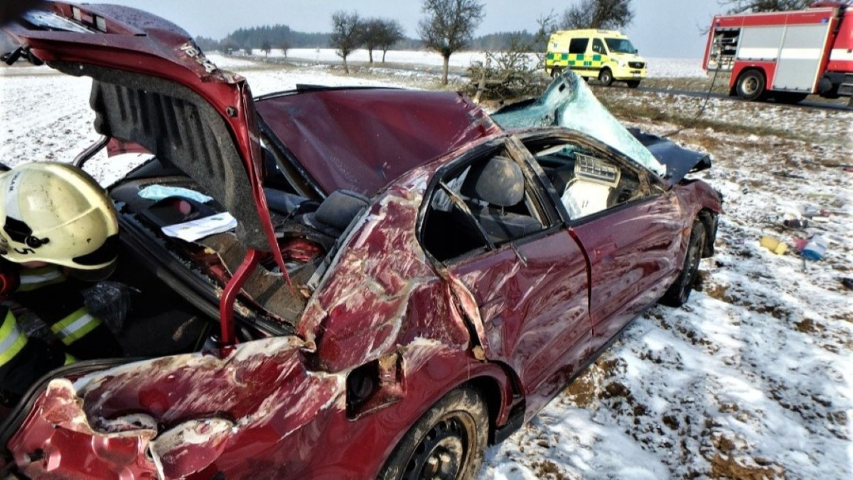 Čtyři lidé se zranili při střetu dvou osobních aut, jedno skončilo mimo vozovku