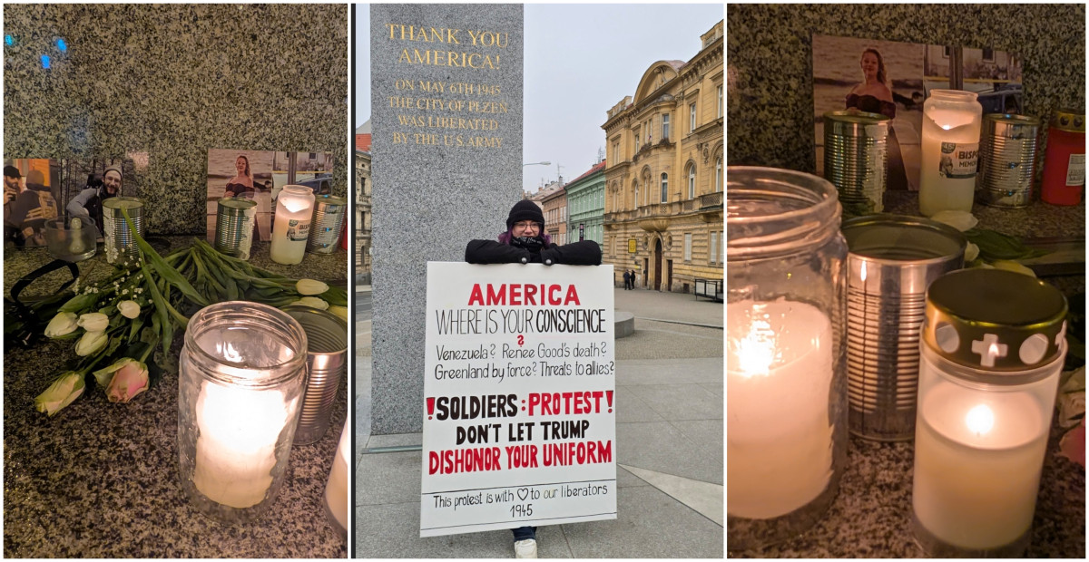 U pomníku Díky, Ameriko! hoří svíčky za oběti střelby v Minneapolisu, poprvé se tam i protestuje