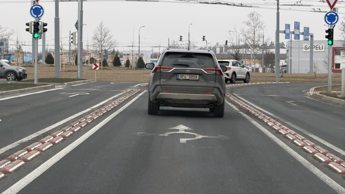Další kritika nového obřího kruháče. Nastříkané šipky z vozovky mizí, řidiči tápou