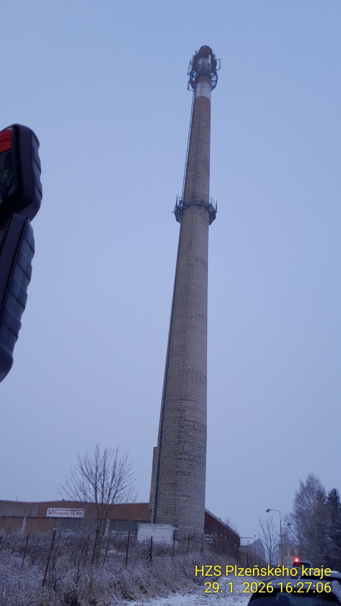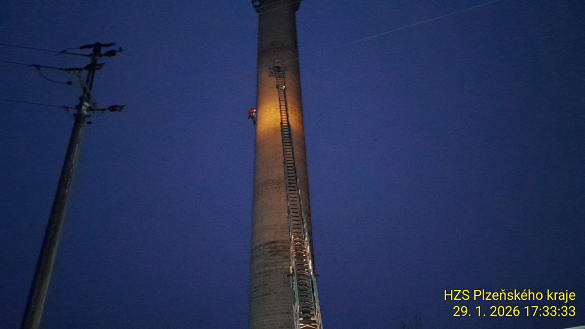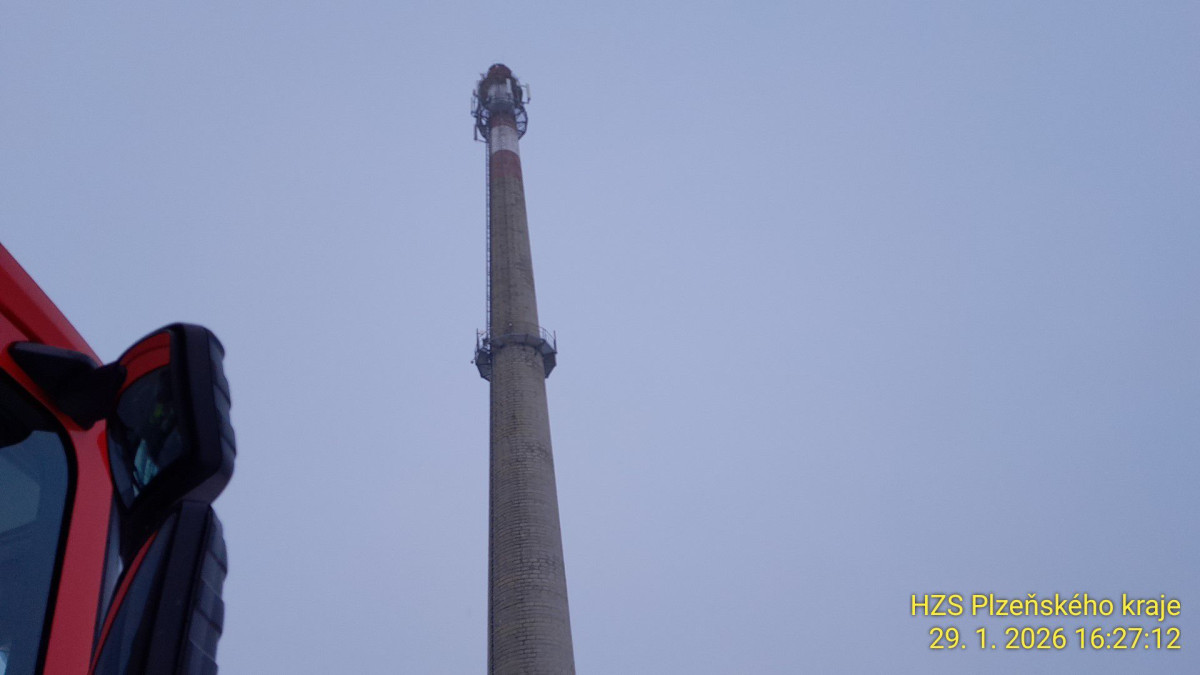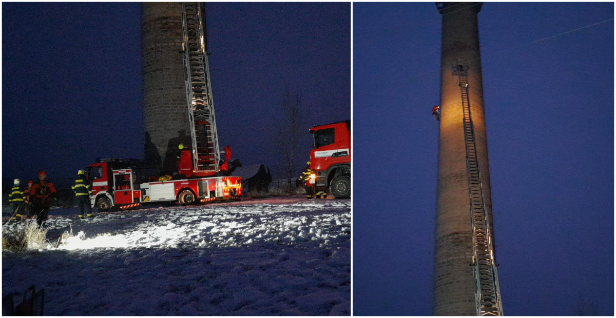Záchranná akce na 90metrovém komínu. Nešťastný muž tam chtěl ukončit život