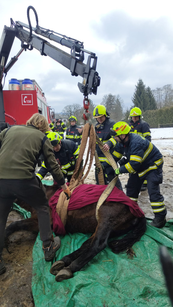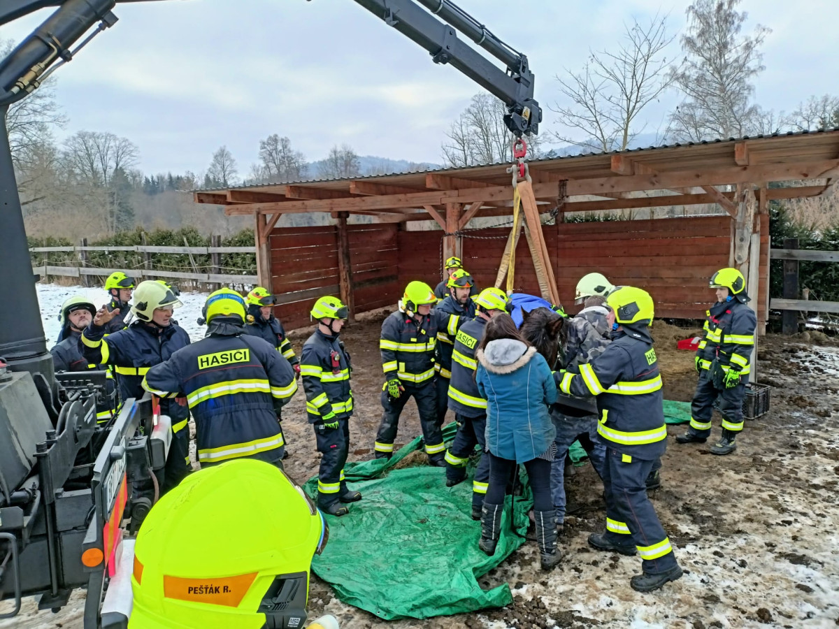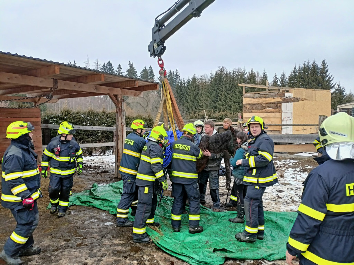 Hasiči zachraňovali koně pomocí hydraulické ruky